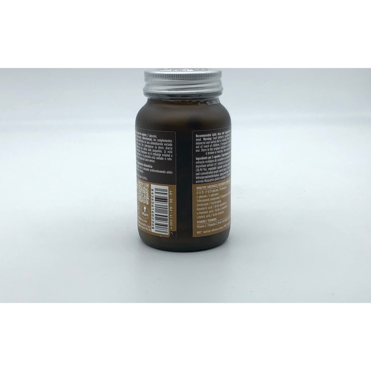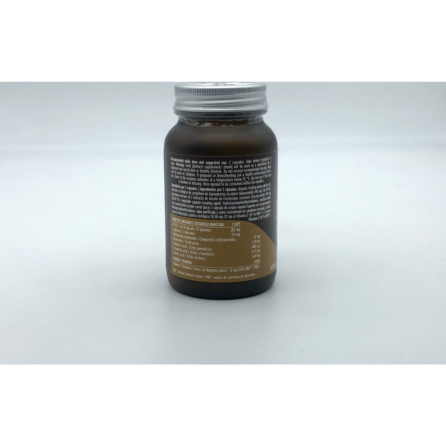 Complemento alimenticio formulado con extractos de reishi y cordyceps, sustancias ricas en beta glucanos. Favorece el funcionamiento normal del sistema inmune, especialmente en las épocas más frías del año.
