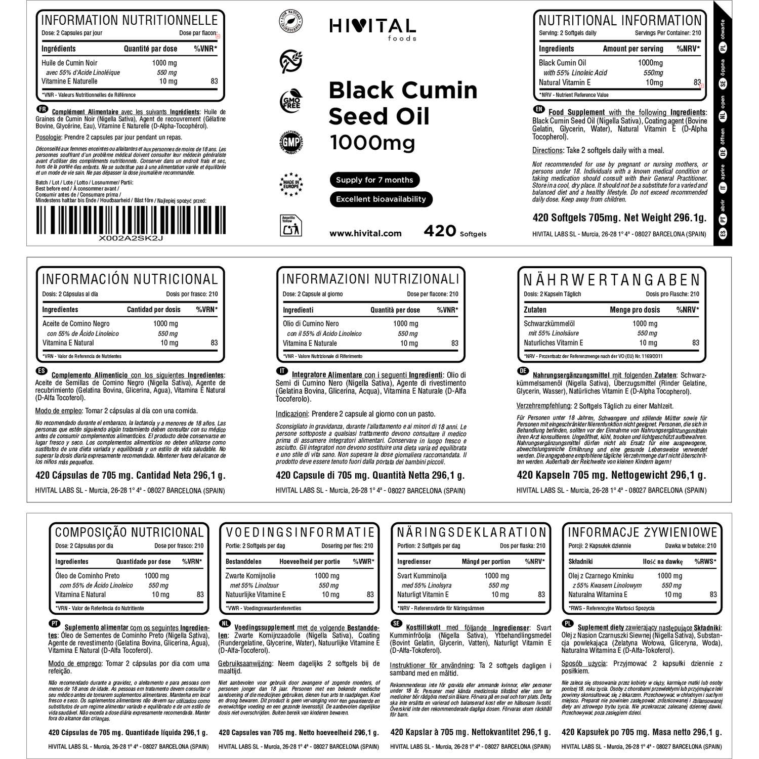 EL MEJOR ACEITE DE COMINO NEGRO: Cada dosis (2 cápsulas) está elaborada con: