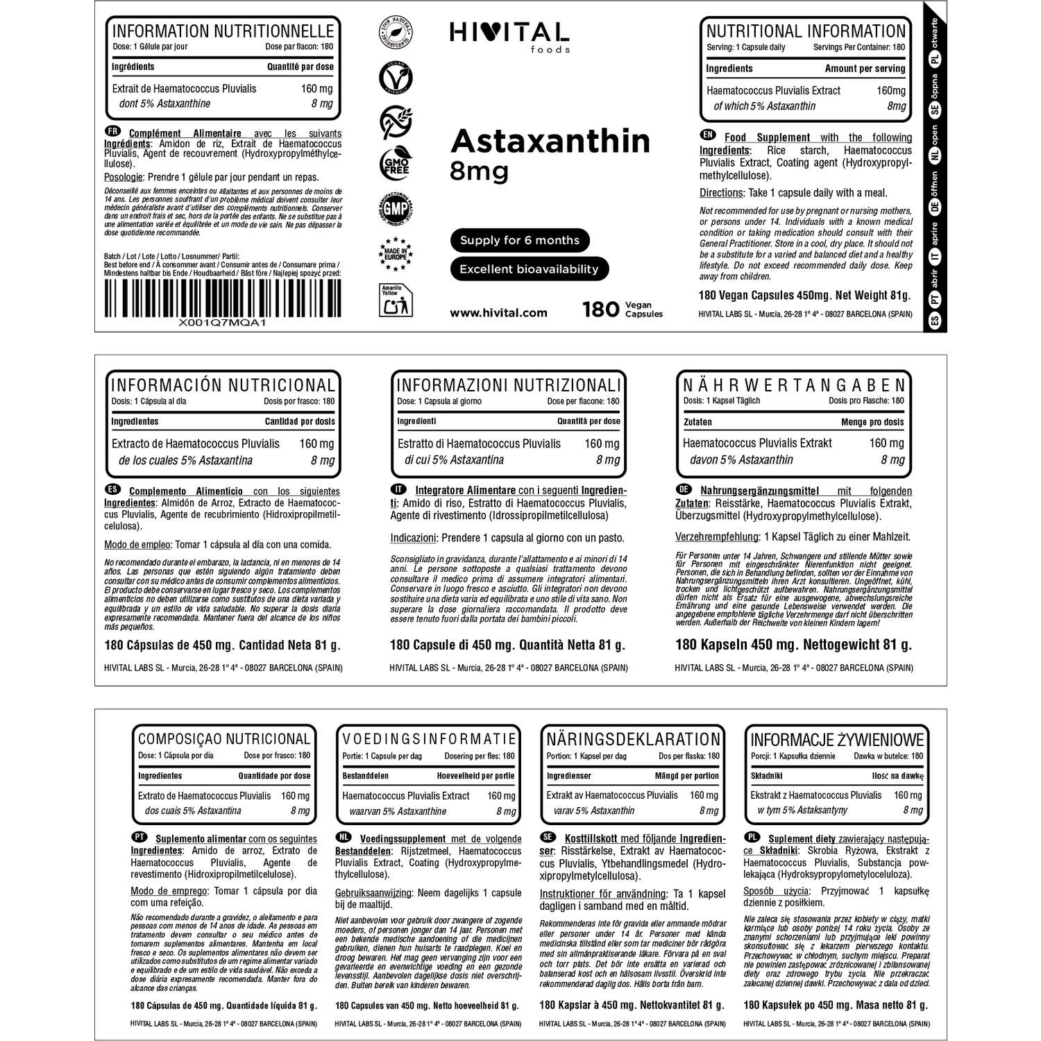 FABRICADO EN ESPAÑA bajo certificados GMP e ISO. Hivital Foods está registrada en sanidad (AESAN) con número 26.019181B.