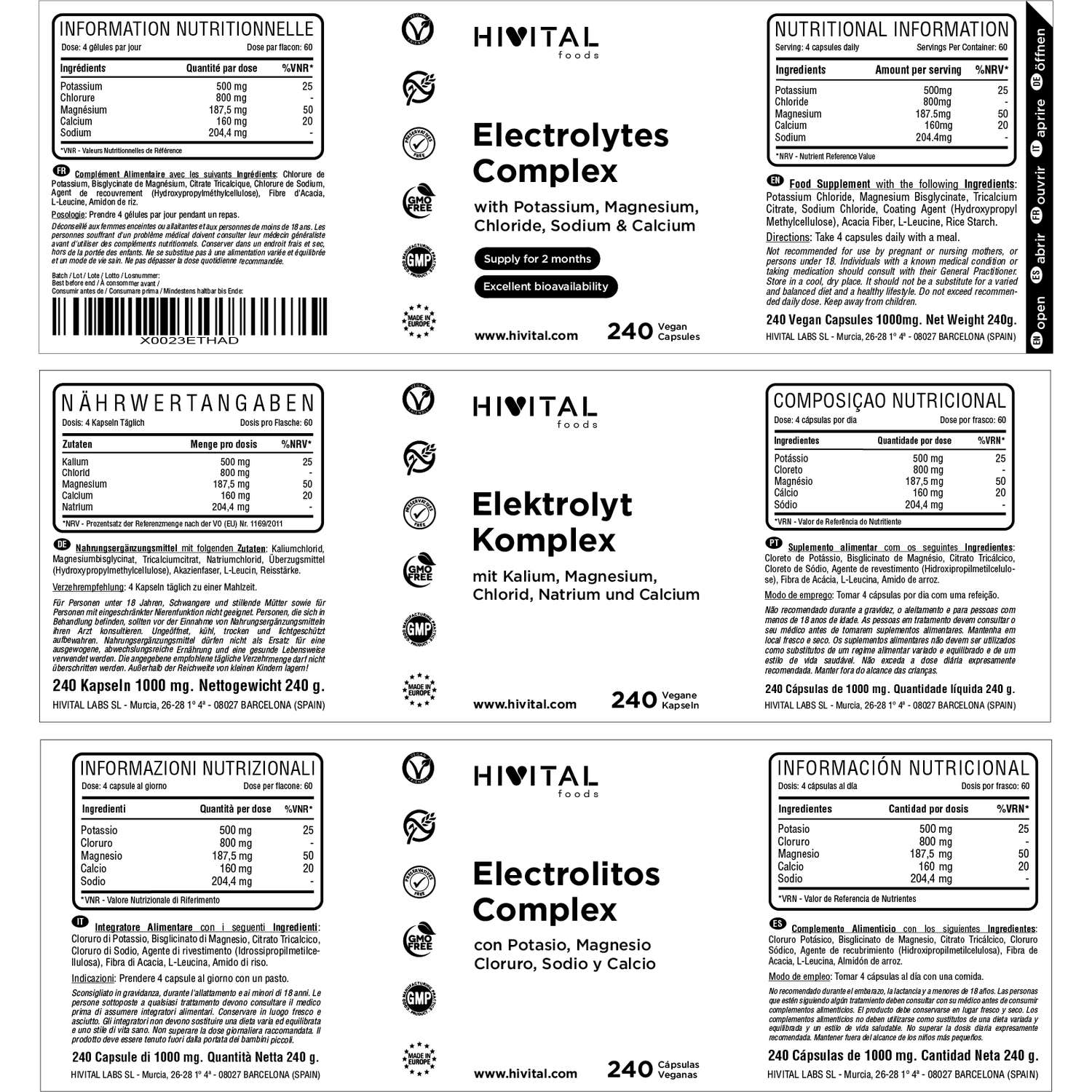 FABRICADO EN ESPAÑA bajo certificados GMP e ISO. Hivital Foods está registrada en sanidad (AESAN) con número 26.019181B.