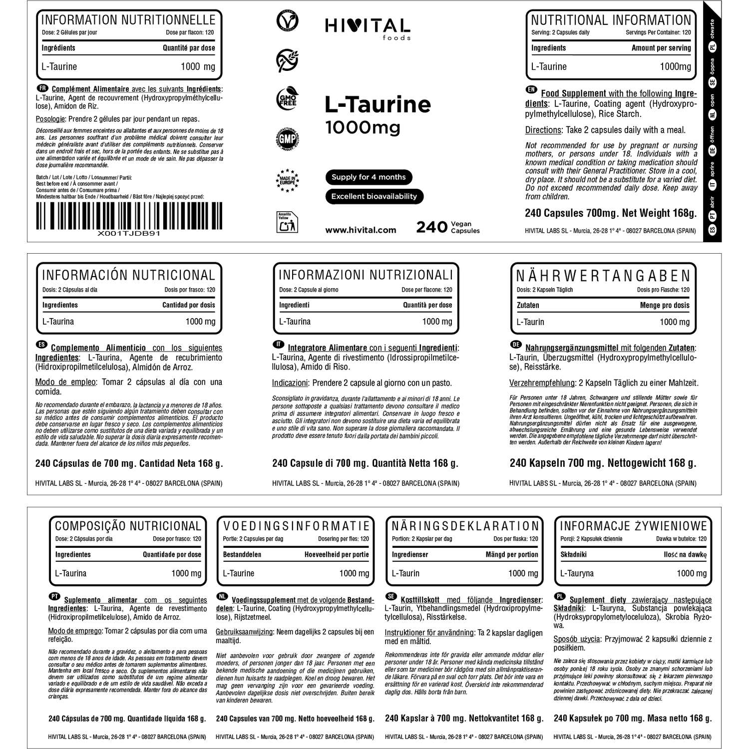 FABRICADO EN ESPAÑA bajo certificados GMP e ISO. Hivital Foods está registrada en sanidad (AESAN) con número 26.019181B.