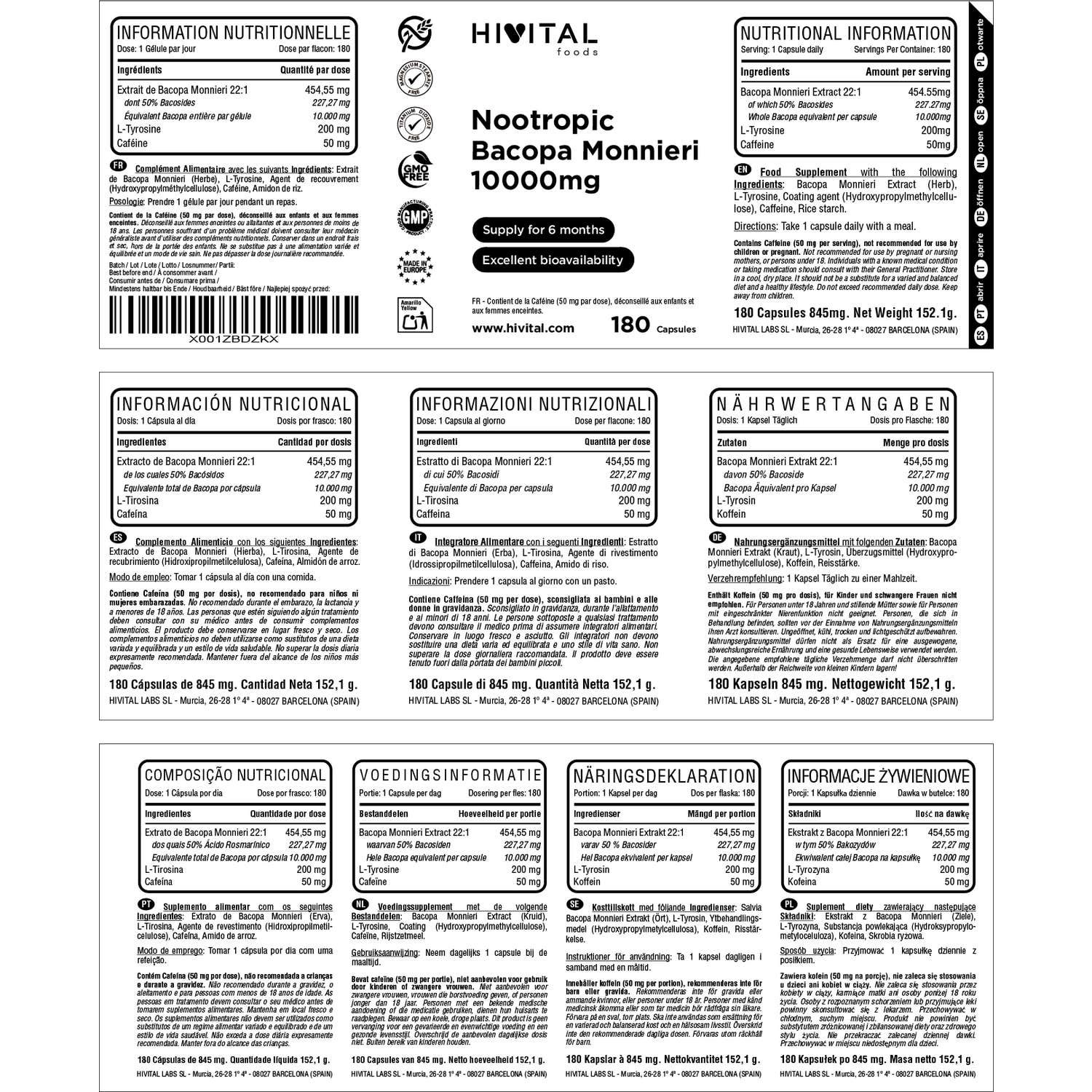 FABRICADO EN ESPAÑA bajo certificados GMP e ISO. Hivital Foods está registrada en sanidad (AESAN) con número 26.019181B.