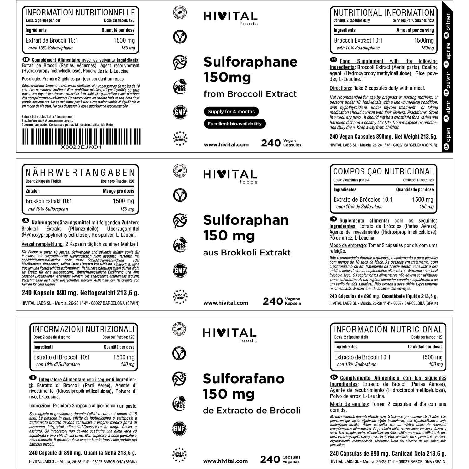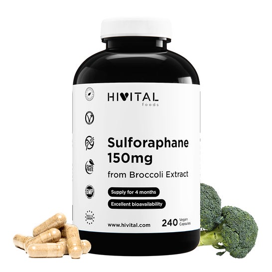 EL MEJOR SULFORAFANO: Cada dosis (2 cápsulas) está elaborada con 1500 mg de Extracto Natural de Brócoli concentrado 10:1 al 10% en Sulforafano, aportando 150 mg de Sulforafano.