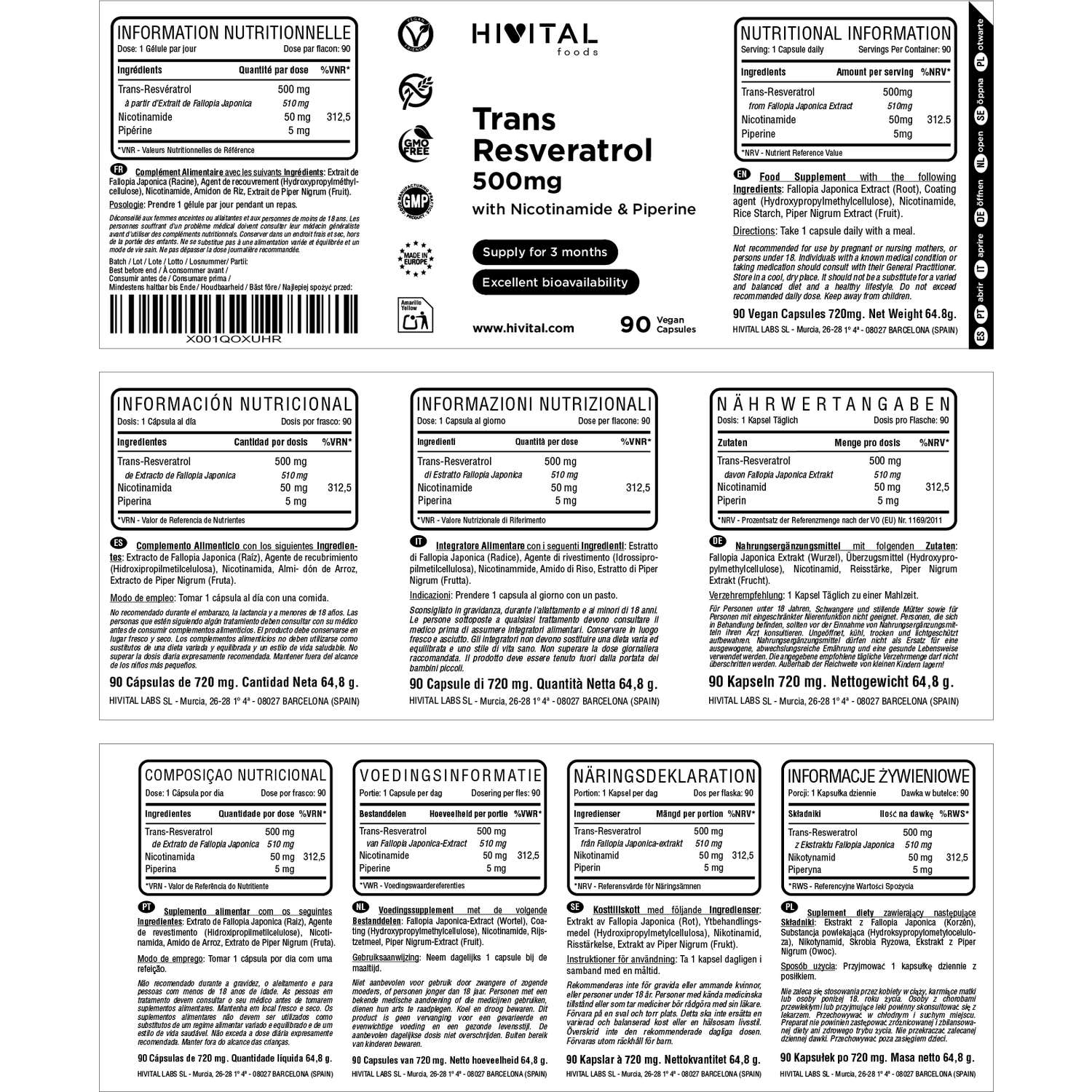EXCELENTE FÓRMULA a base de Extracto Natural de Fallopia Japonica concentrado 200:1, aportando 500 mg de Resveratrol por cápsula, Nicotinamida y Piperina.