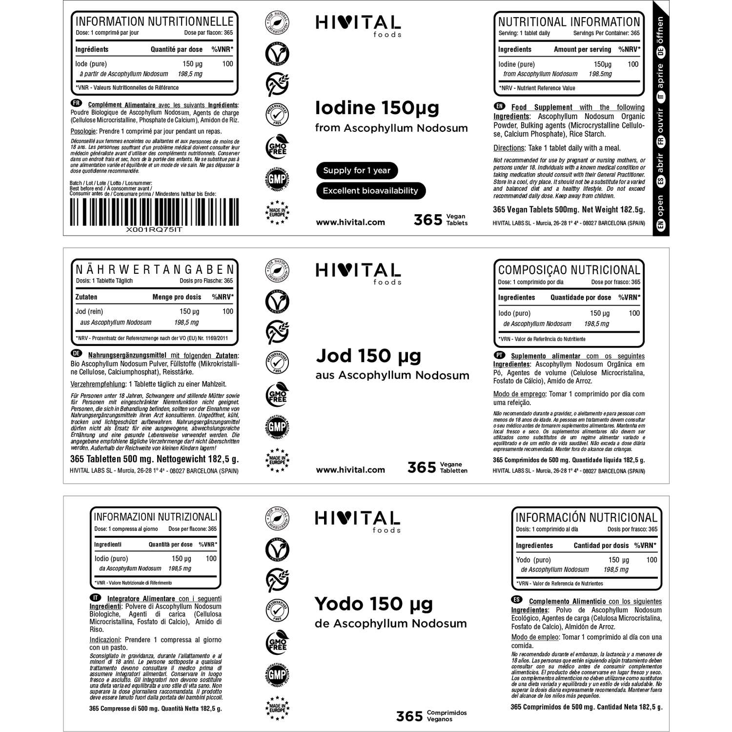 EL MEJOR YODO: Elaborado con 198,50 mg de polvo Ecológico de alga Kelp Ascophyllum Nodosum aportando 150 microgramos de Yodo puro por comprimido.