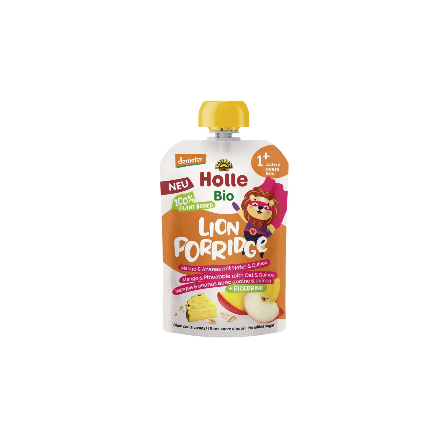 Holle Bio Lion Porridge Maçã Mirtilo Arroz Aveia Quinoa 12m 110g