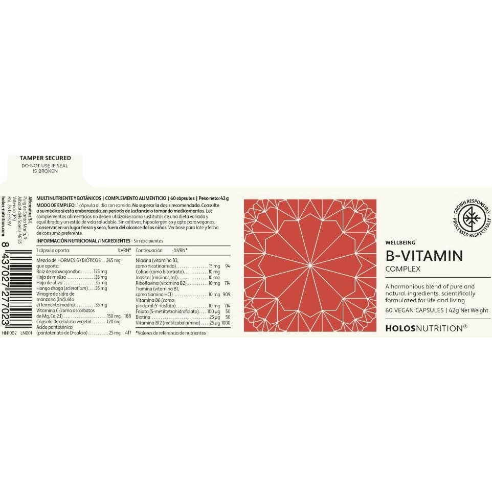 Holos Nutrition B-Vitamin Complex es un suplemento diseñado para complementar la ingesta de vitaminas del grupo B. Estas vitaminas son fundamentales en el proceso de producción de energía, ya que contribuyen a transformar los alimentos en energía. Además, desempeñan un papel importante en el estado de ánimo y en las funciones cognitivas.