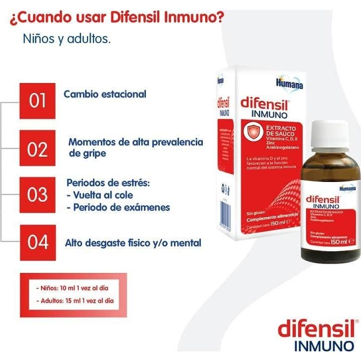 Humana Difensil Inmuno 150ml es un complemento alimenticio pediátrico en formato jarabe, diseñado para ayudar a reforzar naturalmente las defensas del organismo.