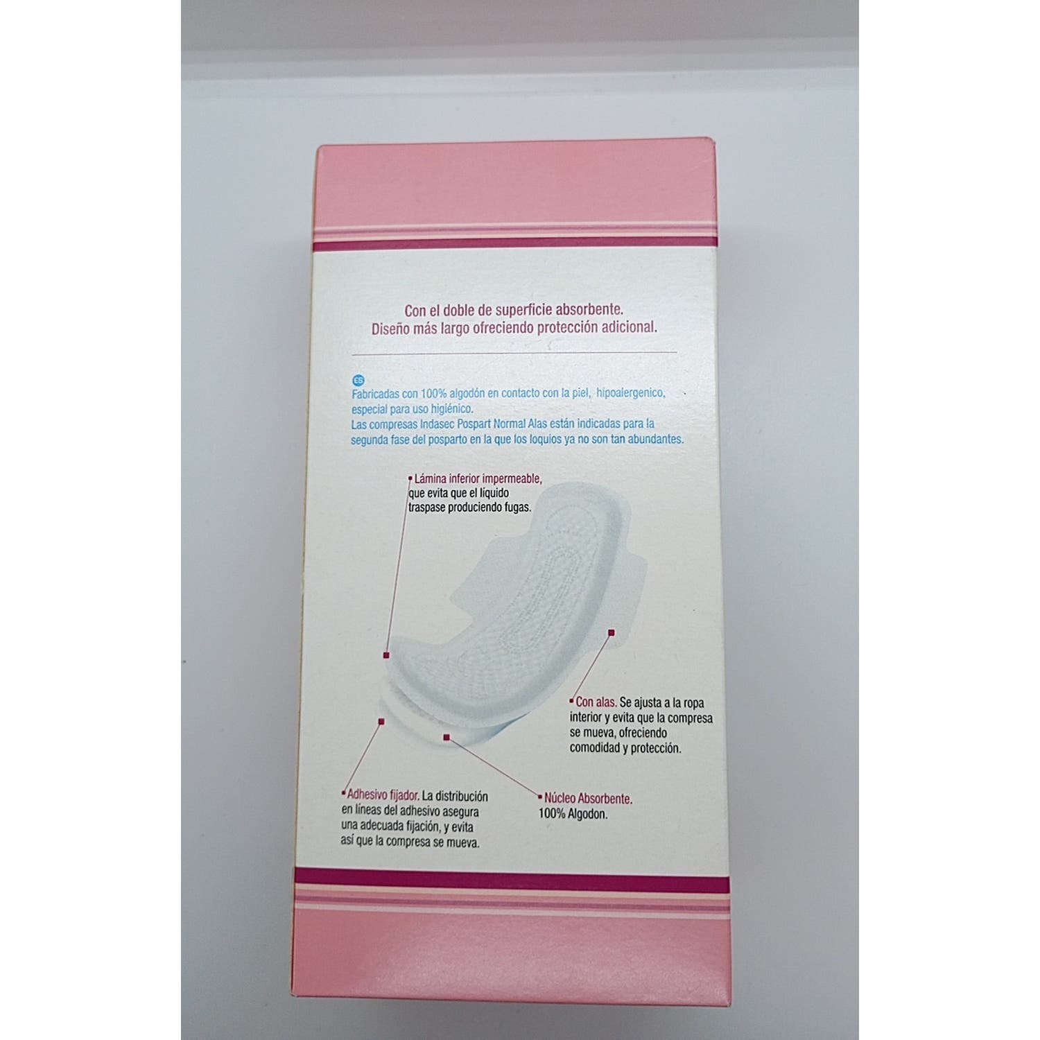 Indasec Pospart Compresas Tocológicas Normal con Alas 14uds son unas compresas con alas para la segunda parte del postparto. Estas compresas absorben las pérdidas más abundantes de los primeros días después del parto.