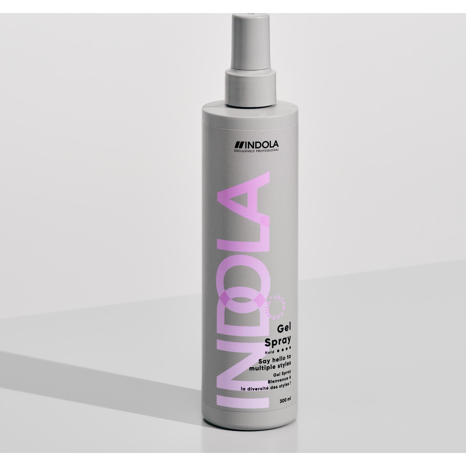 Gel en spray vegano y sin aerosol que sostiene la forma y definición, ofreciendo una fijación de larga duración.