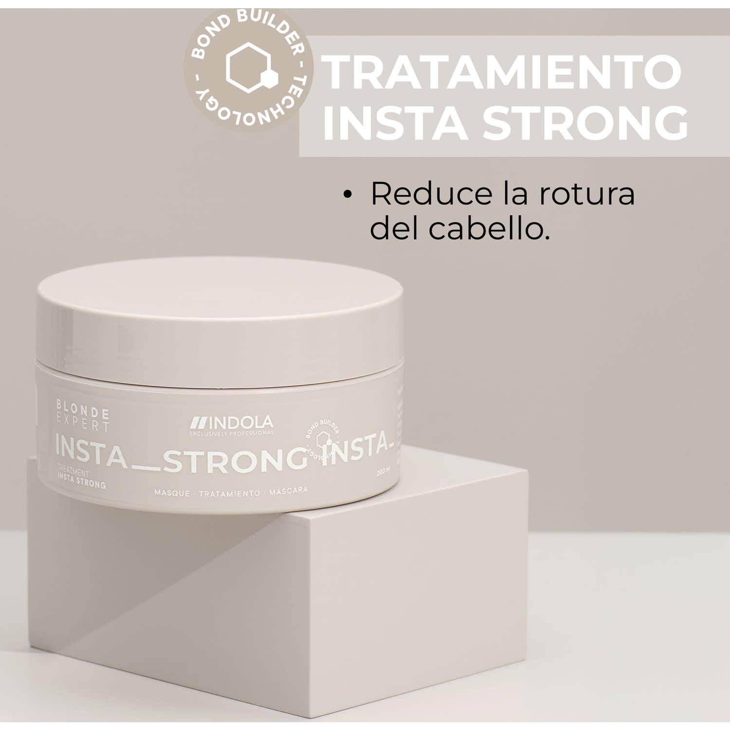 Revitaliza y fortalece tu cabello rubio con la Mascarilla Reparadora Indola Blonde Expert Insta Strong, especialmente formulada para cabellos dañados, decolorados y tratados químicamente. Gracias a su avanzada Tecnología Hair-Bond, esta mascarilla repara la estructura interna del cabello, restaurando los enlaces de queratina y mejorando la resistencia hasta en un 91%.