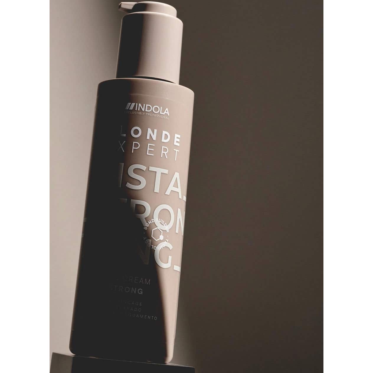 Crema sin aclarado que repara y protege el cabello rubio tras la decoloración y mantenimiento en casa.