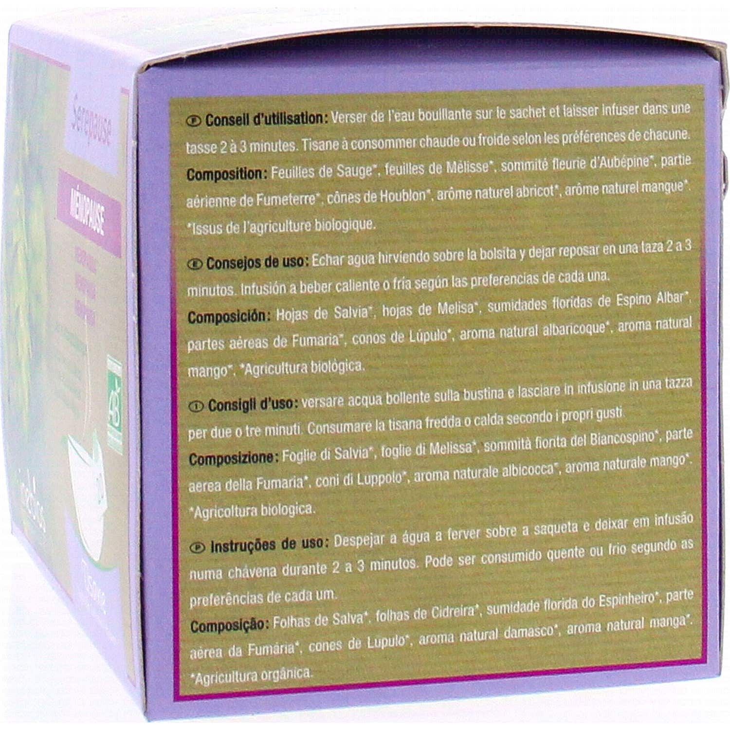 Serepause Infusión es ideal como complemento a los comprimidos Serepause. Su agradable sabor natural a albaricoque y mango convierte cada sorbo en una experiencia placentera de bienestar y confort.