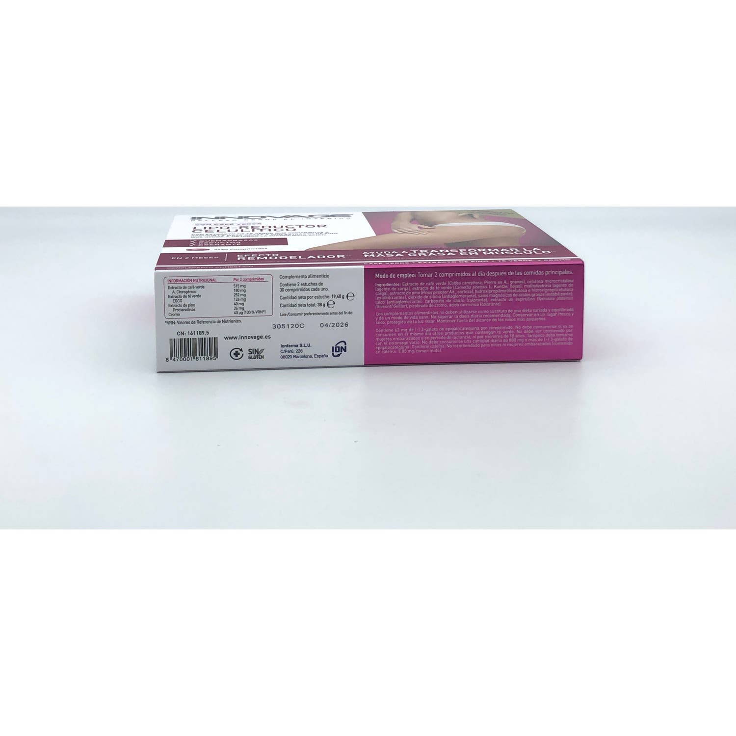 Innovage® Lipo-reductor Celulítico 2x30comp es un complemento alimenticio diseñado para reducir la piel de naranja y disminuir la grasa localizada.