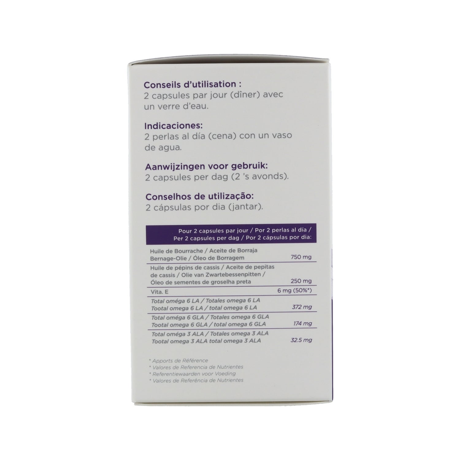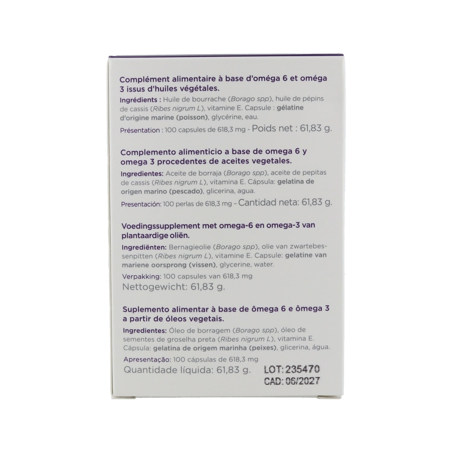 Inovance Bourrache Cassis 100 perlas es un complemento alimenticio compuesto formulado a base de Omega 3 y Omega 6 procedentes de aceites vegetales de borraja. Estos componentes contribuyen al mantenimiento de una piel bonita en todo tu cuerpo.