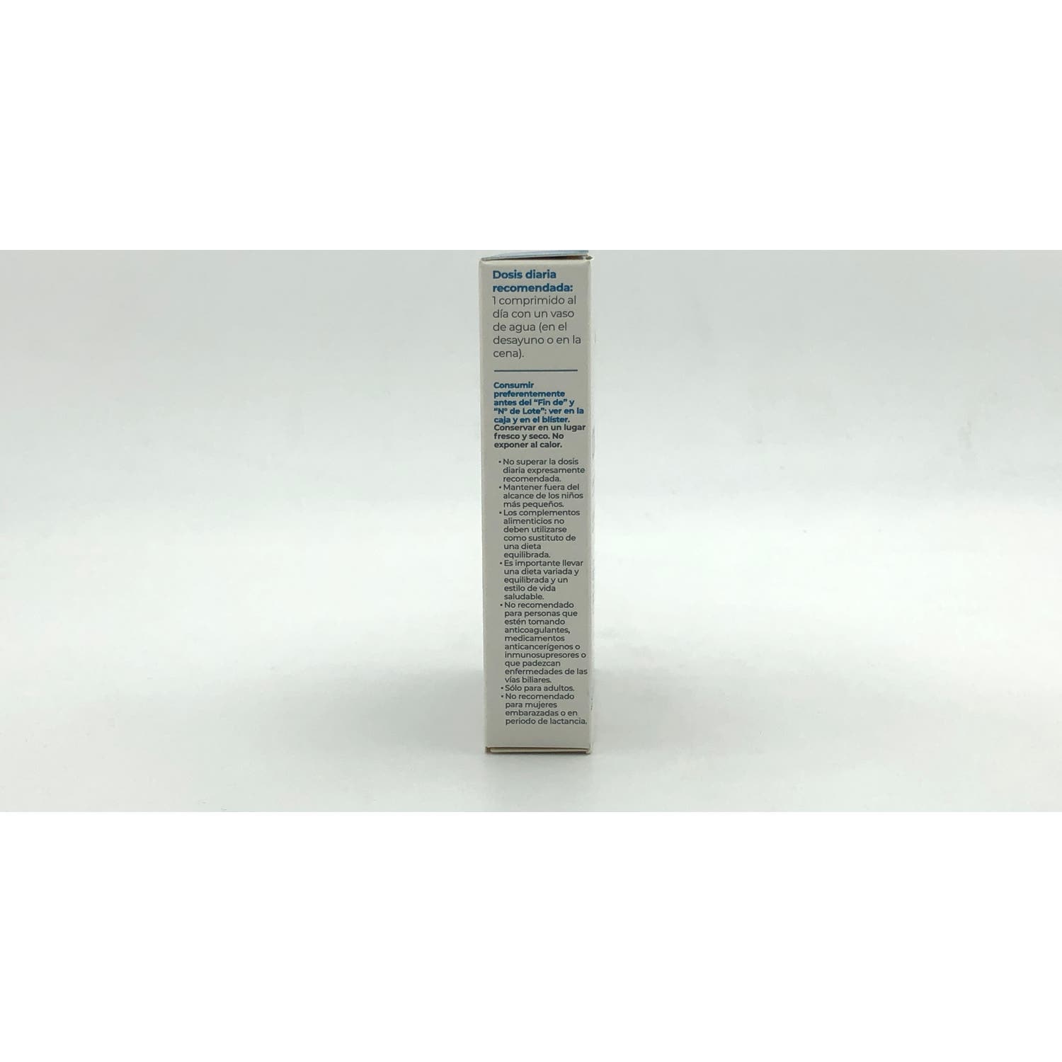 Tomar un comprimido diario con el desayuno o la cena y un vaso de agua. Los complementos alimenticios deben tomarse dentro de una dieta variada y equilibrada y como parte de un estilo de vida activo.