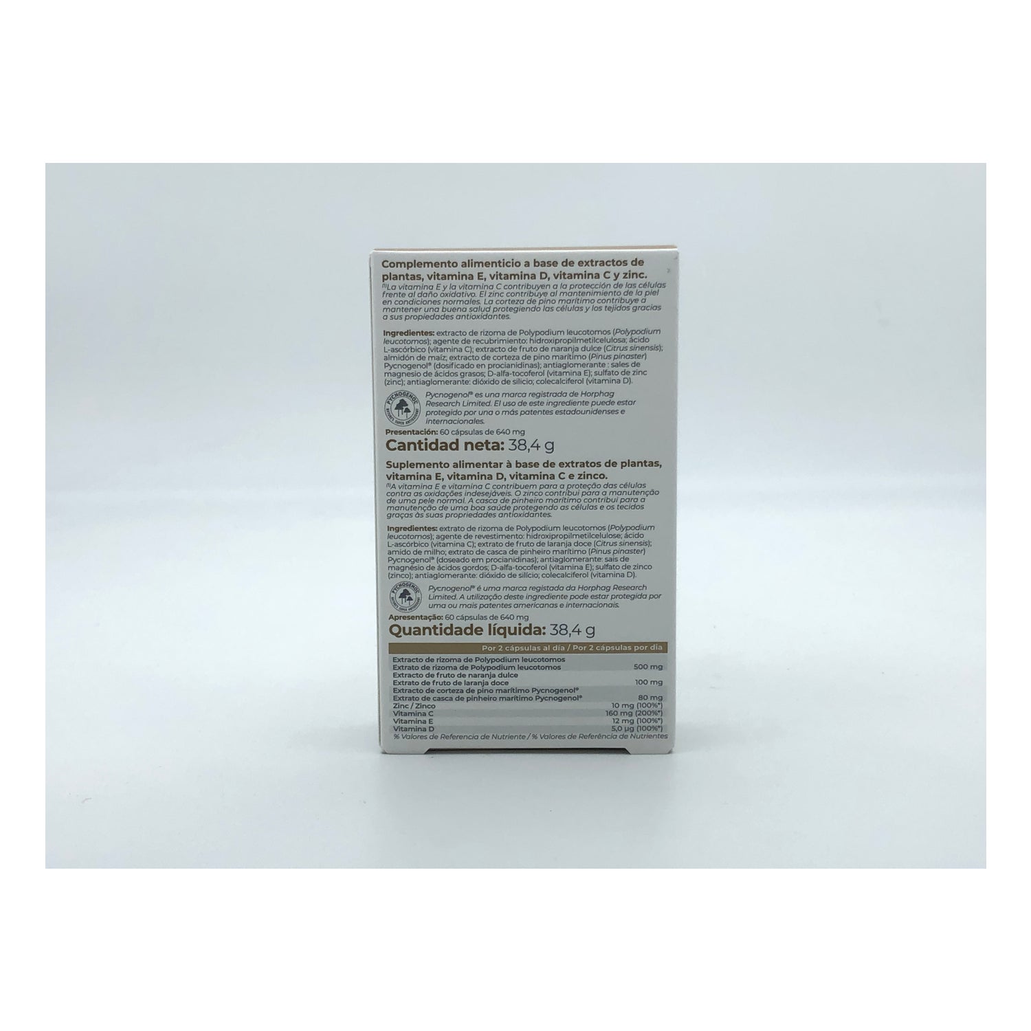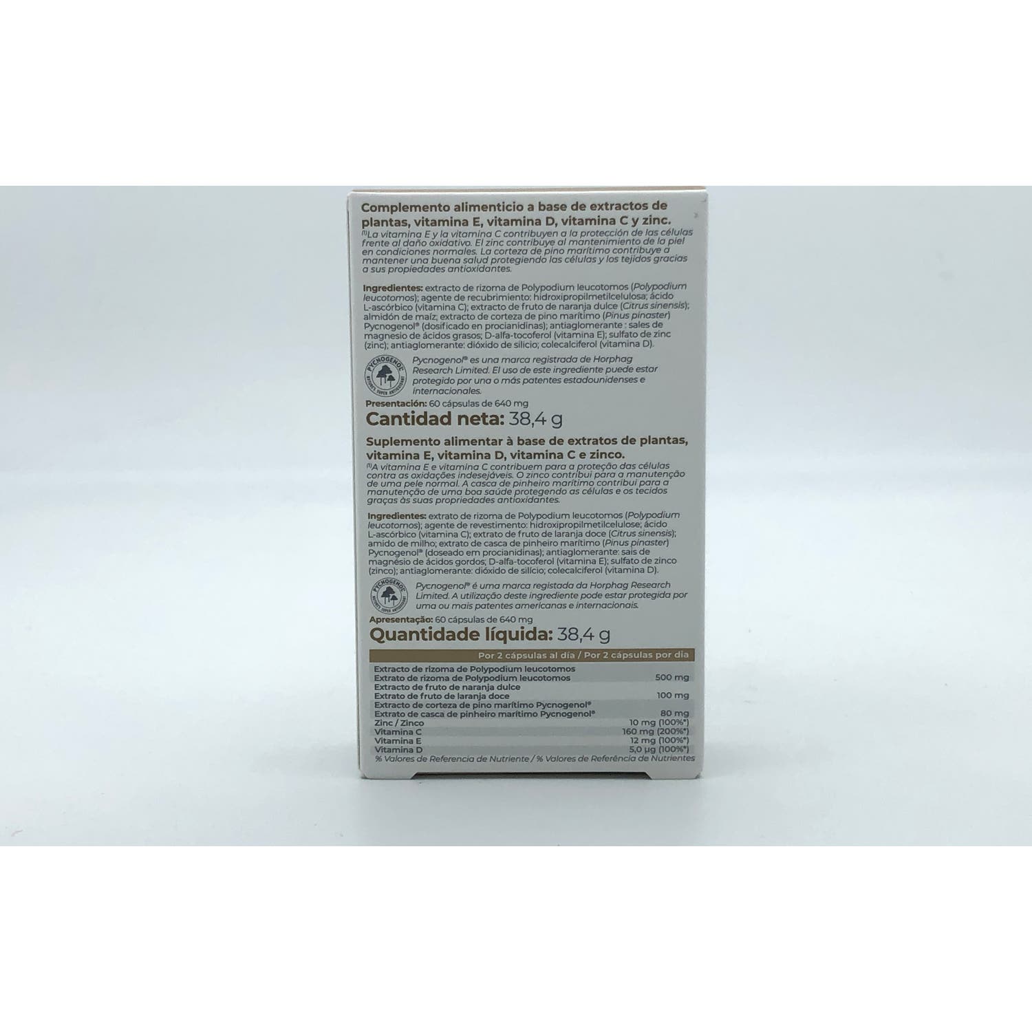 Contiene Pycnogenol® y extracto de plantas, vitamina E, vitamina D, vitamina C y zinc, una acción fotoprotectora y antioxidante.