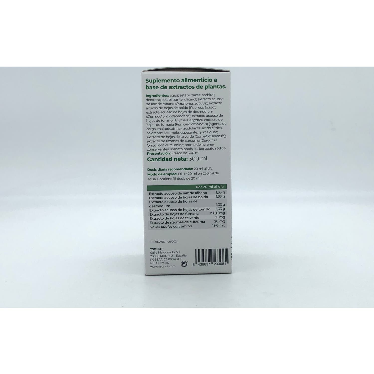 El desmodium favorece el drenaje hepático. La cúrcuma es conocida por sus efectos beneficiosos sobre la digestión. Favorece el buen funcionamiento del hígado y facilita la eliminación de las grasas del hígado. La Fumaria se utiliza tradicionalmente para favorecer las funciones de eliminación del organismo. El sorbitol es un poliol que contribuye al bienestar digestivo (trastornos dispépticos).