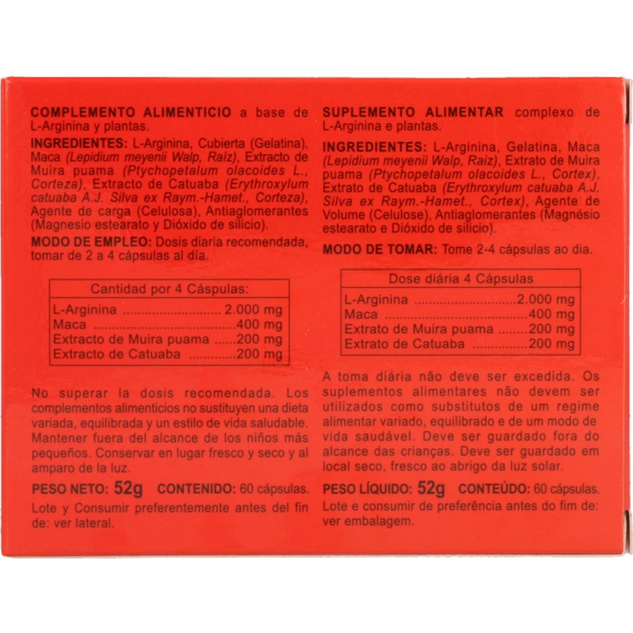 Complemento alimenticio en forma de cápsulas, desarrollado específicamente para el hombre, y elaborado a base de L-arginina. Está indicado para: