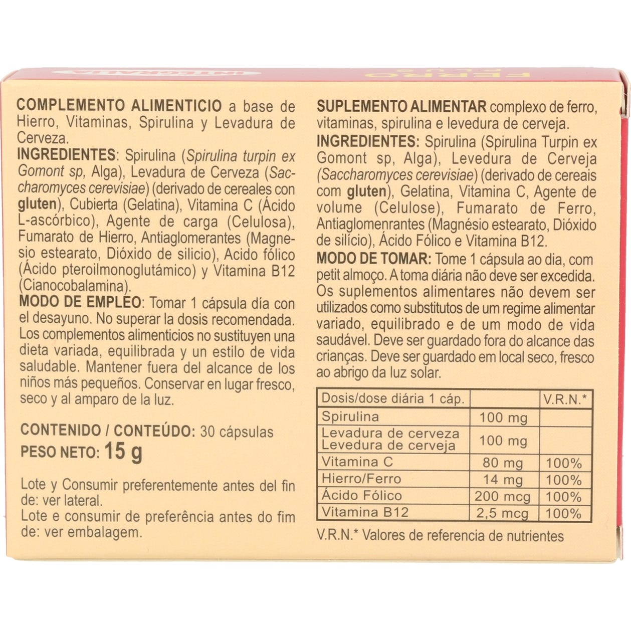 Complemento nutricional a base de una fórmula con hierro de fácil absorción, apto para consumo vegetariano, kosher y halal. Aporta hierro que se usa para tratar la anemia y mejorar la estructura de la sangre. Es un tipo de antianémico.