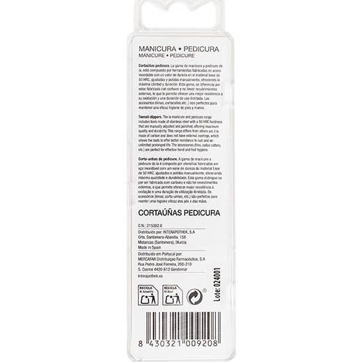 Interapothek Cortauñas Pedicura 1 ud para pedicura permite cortar las uñas de los pies con precisión y seguridad, incluso cuando son gruesas. Está fabricado con materiales de alta calidad para ofrecer buena higiene y una alta durabilidad, adecuado para el cuidado en casa y para rutinas diarias de pedicura.