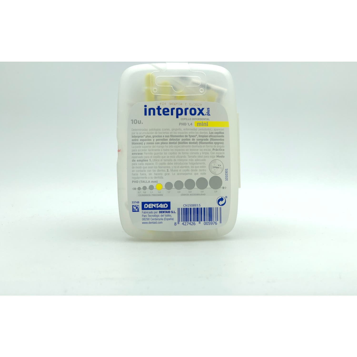 Interprox Plus Mini 10uds son cepillos interdentales diseñados con mangos largos para que sean fáciles de utilizar, con un cabezal en ángulo para evitar la necesidad de ajuste manual de las cuerdas.