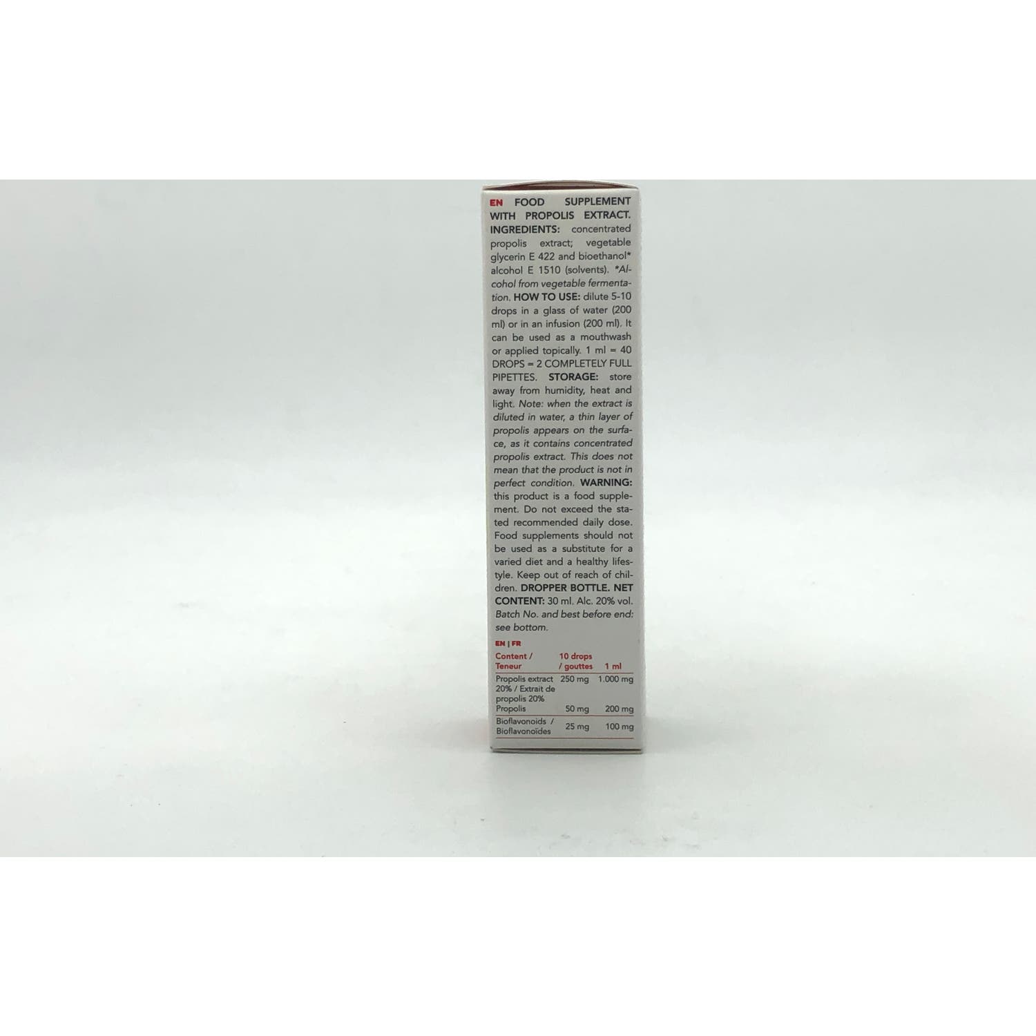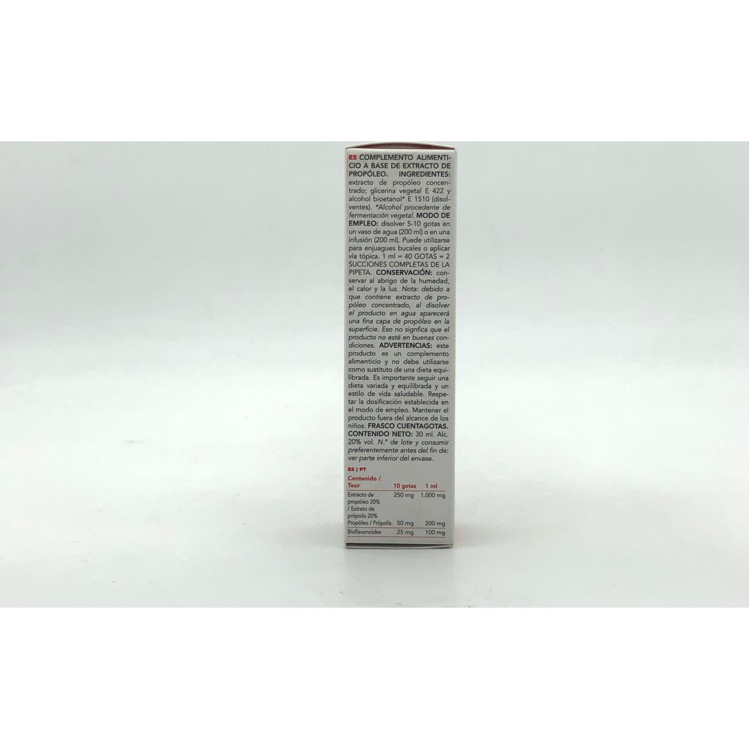 - Extracto de propóleo: al 20%