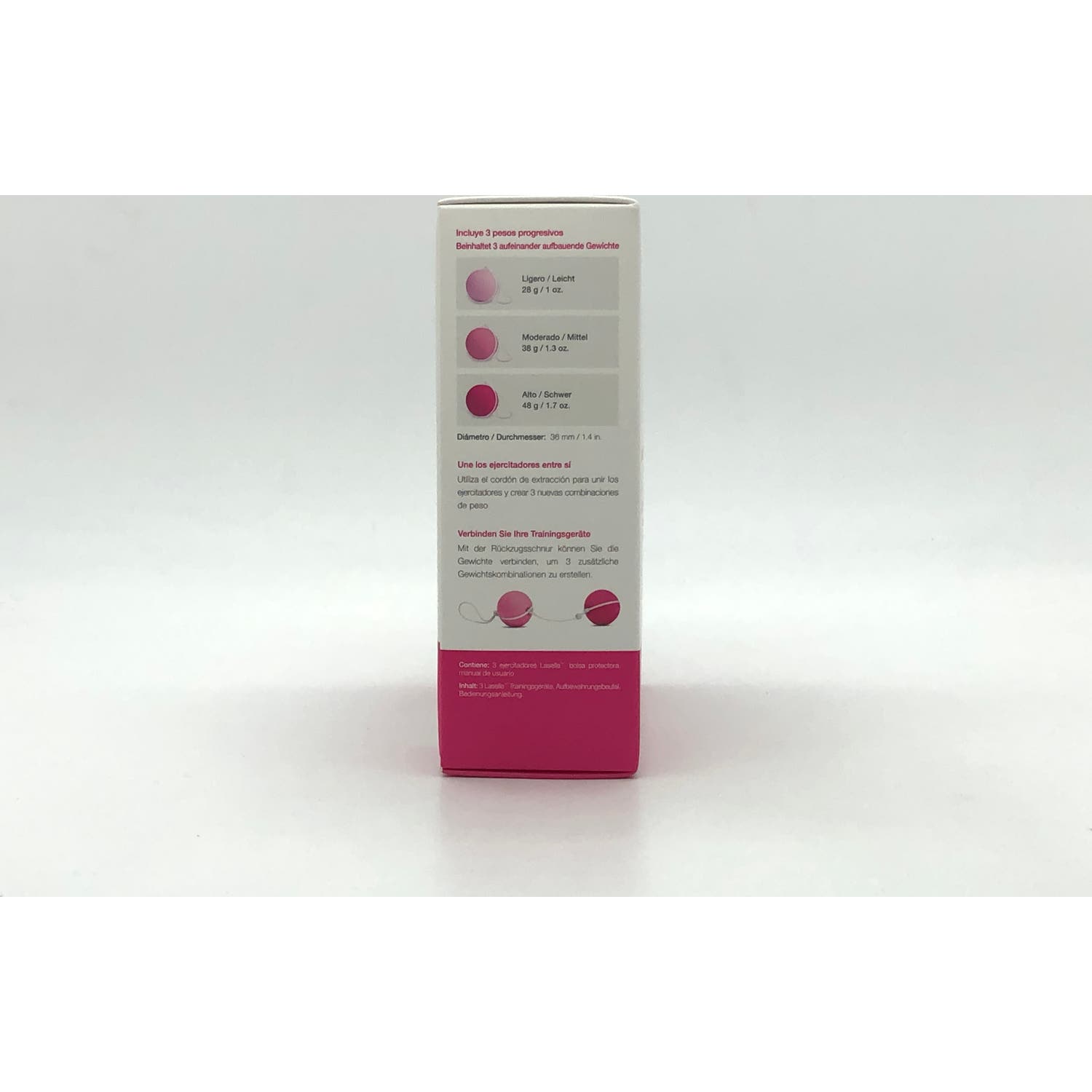 Intimina Rutina de Kegel Laselle 3ud son unas bolas Kegel de silicona biocompatible que ayudan a fortalecer el suelo pélvico. Dotadas de 3 pesos (o ejercitadores) progresivos, ayudan a tonificar los músculos del suelo pélvico de una forma sencilla y segura. En concreto, los tres pesos corresponden a los 28 gramos, 38 gramos y 48 gramos cada uno.