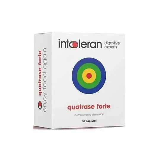 Intoleran Quatrase 10.000 36caps es un complemento alimenticio formulado con una mezcla de enzimas digestivas, especialmente indicadas para digerir hidratos de carbono complejos, como los fructanos y galactanos, que se pueden encontrar en alimentos como legumbres, verduras y cereales.