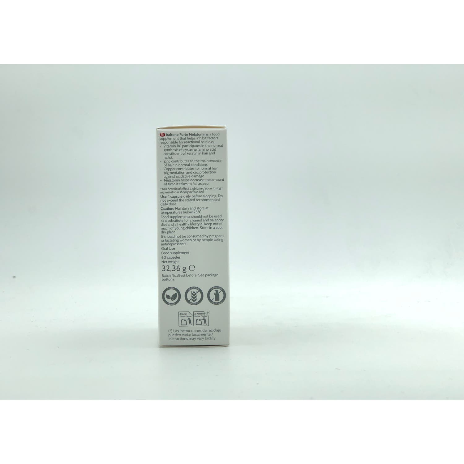 Iraltone Forte Melatonin 60caps es un complemento alimenticio diseñado para estimular el crecimiento del cabello.