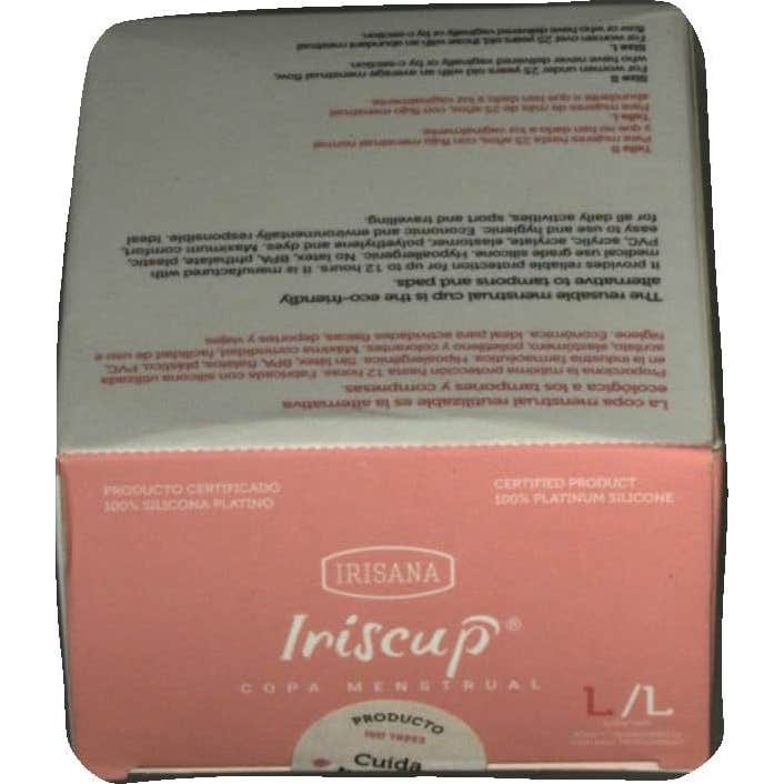 Copa menstrual Irisana Iriscup talla L. Contiene dos unidades en el empaque. Gentil con el área vaginal, se adapta fácilmente a cualquier forma sin producir molestias o laceraciones.