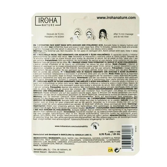 Mascarilla facial con acción calmante e hidratante. Elaborada a partir de un 97% de ingredientes certificados de origen natural, entre sus activos está el aguacate, fruto rico en ácido fólico, vitaminas, antioxidantes, y omega-3, 6 y 9, que se encarga de hidratar y nutrir en profundidad a la vez que reconforta la piel. Por otro lado, el ácido hialurónico aporta una hidratación intensiva con efecto flash y mejora la elasticidad de la piel.