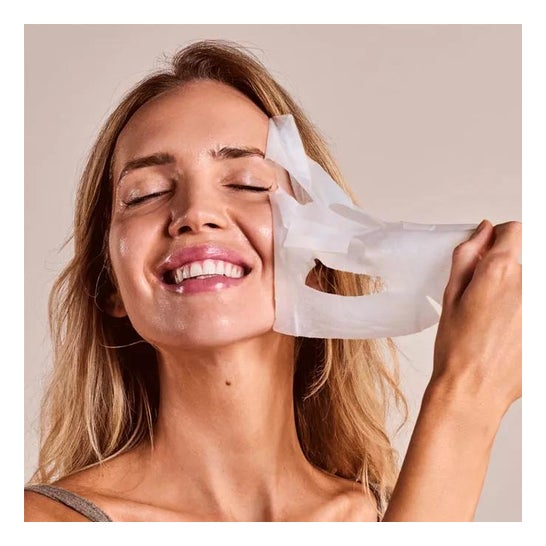Desdoblar la mascarilla y colocarla sobre el rostro limpio. Después de 15 minutos retirar y dar un suave masaje para acabar de absorber el sérum. No aclarar la piel. Ideal 1 vez por semana.