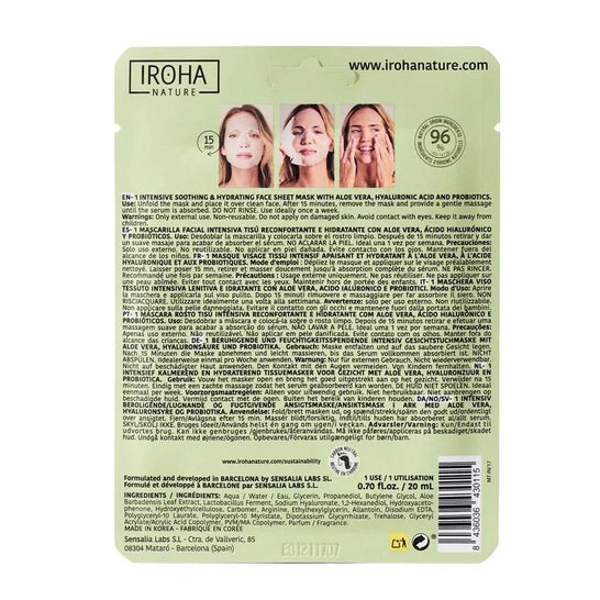 Esta mascarilla facial ayuda a hidratar intensamente la piel, a la vez que favorece la renovación celular y cuida de la microbiota. Entre sus activos está el ácido hialurónico, que se encarga de aportar una hidratación intensiva con efecto flash a la piel, mientras mejora la elasticidad y ayuda a rellenar y reafirmar las pequeñas arrugas. El aloe vera posee propiedades antioxidantes y antibacterianas, de igual modo que mejora la elasticidad de la piel y ayuda a prevenir los signos negativos de la edad. Está indicada para las pieles secas, sensibles y fatigadas.
