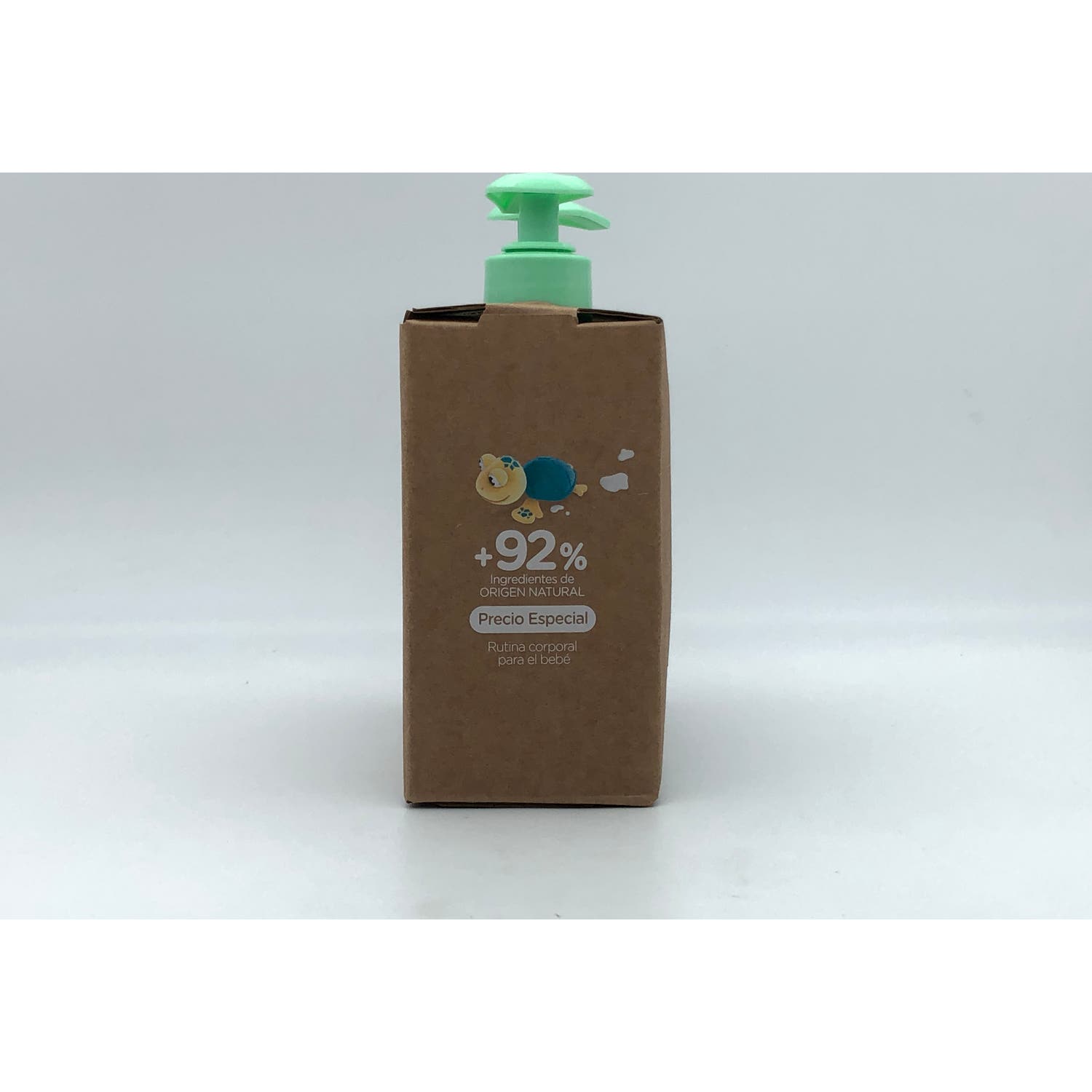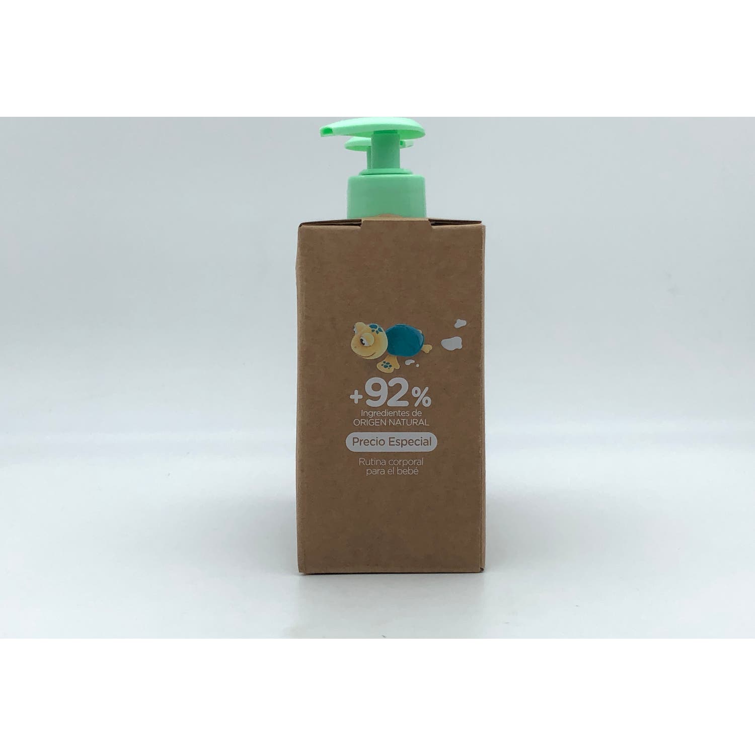 Elaborado con más de un 90% de ingredientes de origen natural con propiedades humectantes que favorecen la protección cutánea como la glicerina y la betaína que ayudan a limpiar con suavidad la piel del bebé durante la rutina de baño.