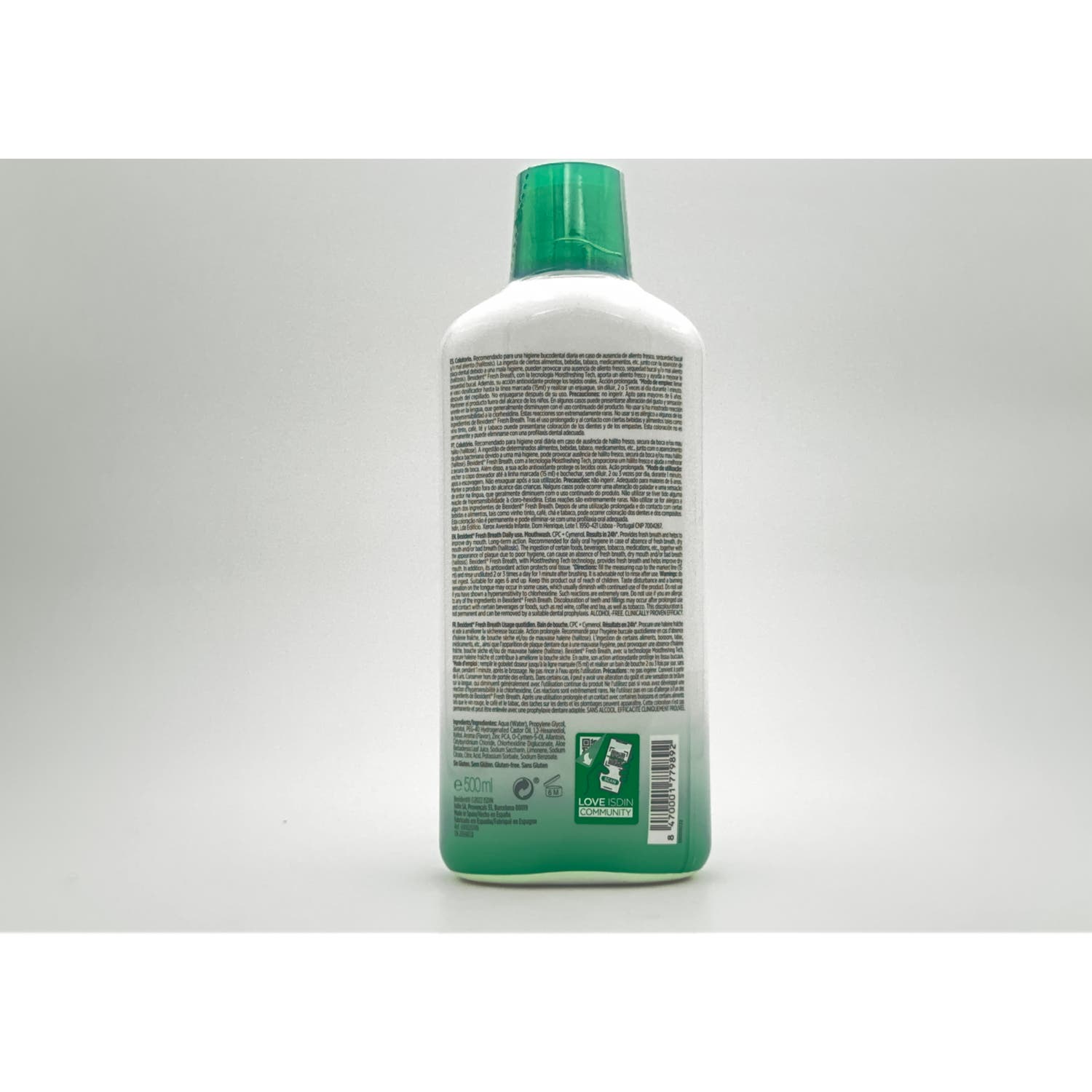 ISDIN Bexident Fresh Breath Colutorio 500ml es un enjuague bucal de uso diario que ayuda a mejorar la sequedad bucal, a la vez que favorece un aliento fresco.