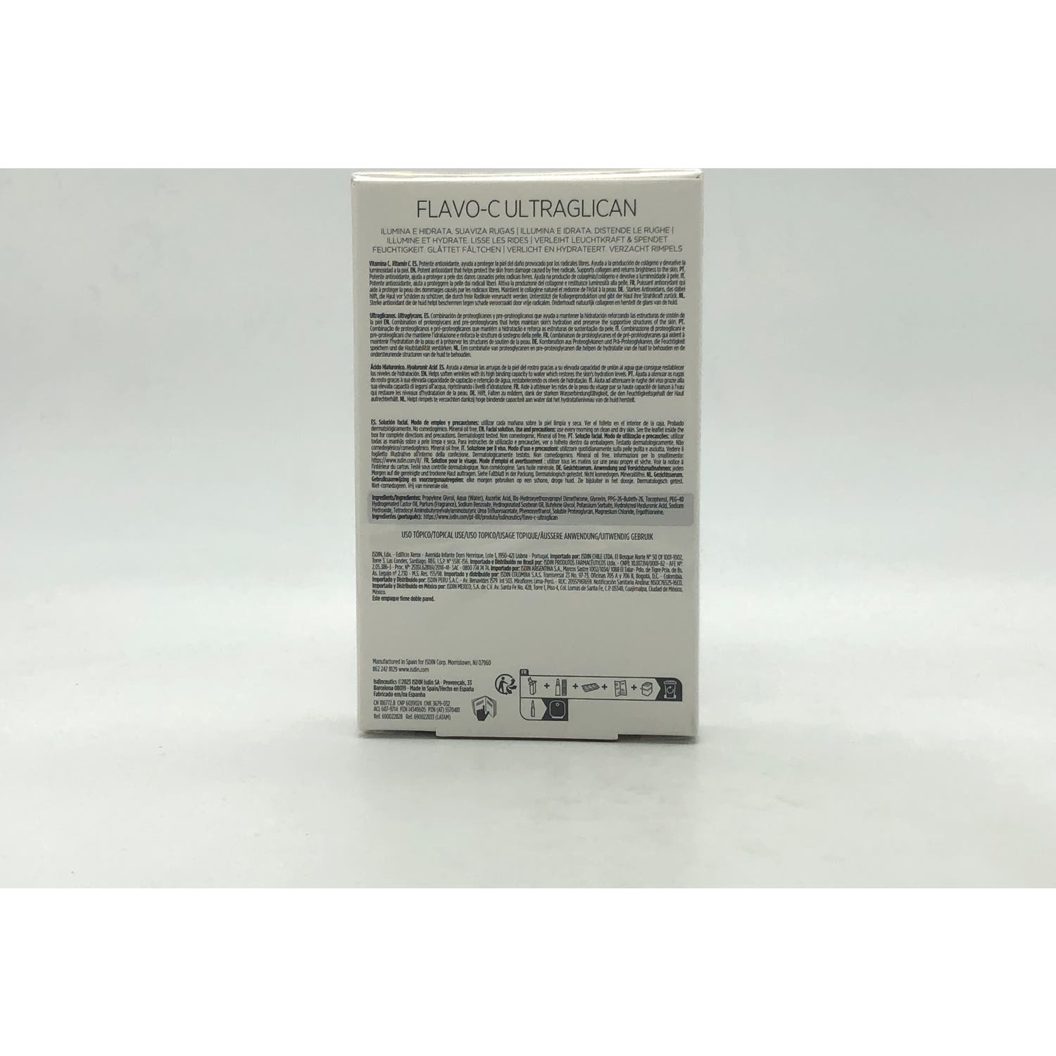 ISDIN Isdinceutics Flavo-C Ultraglican 10amp x 2ml es una solución facial en ampollas con una avanzada asociación de antioxidantes e hidratantes que actúa sobre la pérdida de firmeza y sobre las líneas finas de expresión.