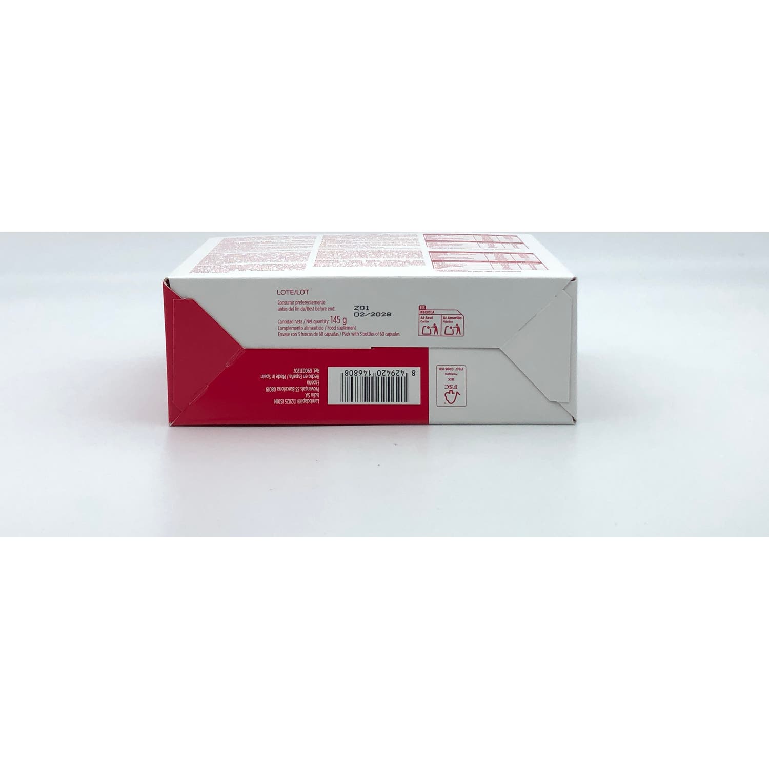 • Recubrimiento de las cápsulas: gelatina y colorante (E171 y E172).