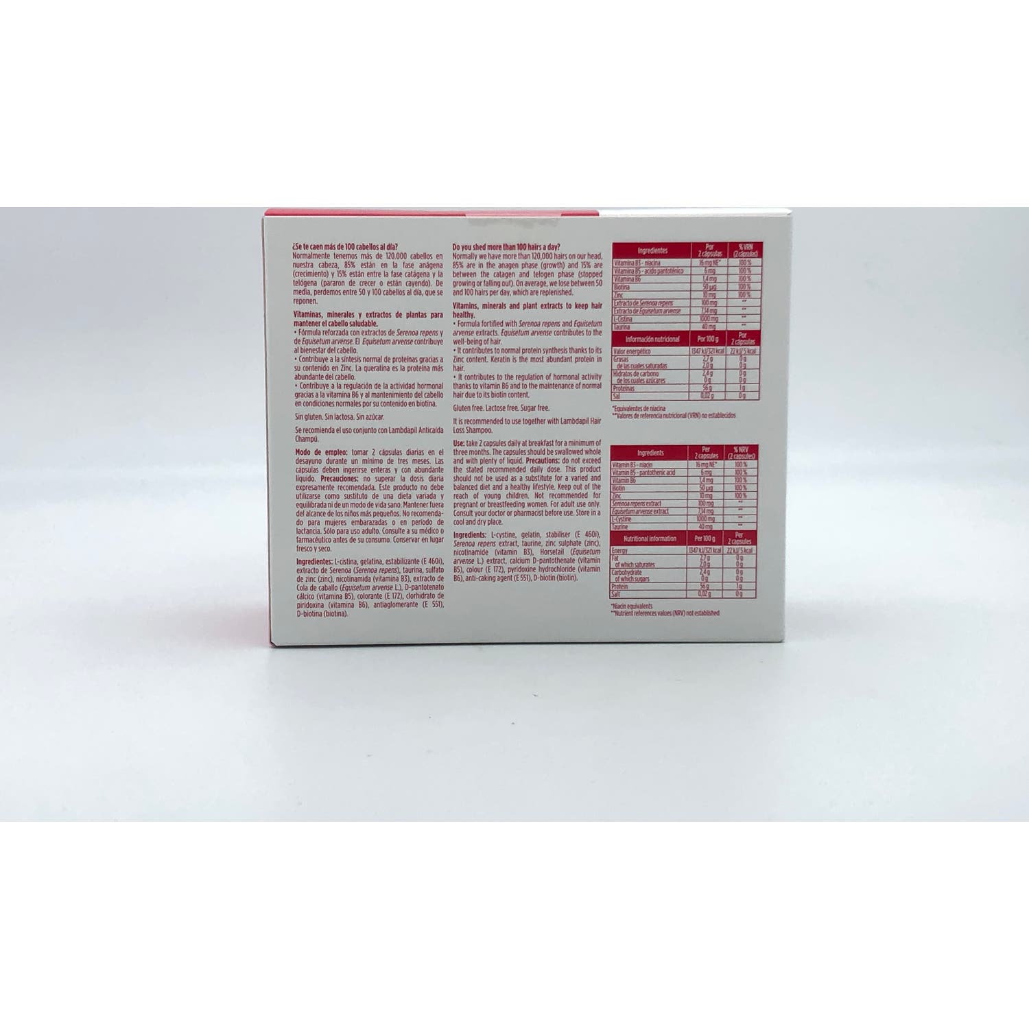 Elaborado a base de Lambdapil® que estimula el folículo piloso y regula la secreción sebácea normal. Además, contribuye a regular la actividad hormonal gracias a la vitamina B6 y el zinc que ayuda a proteger las células frente agentes externos.