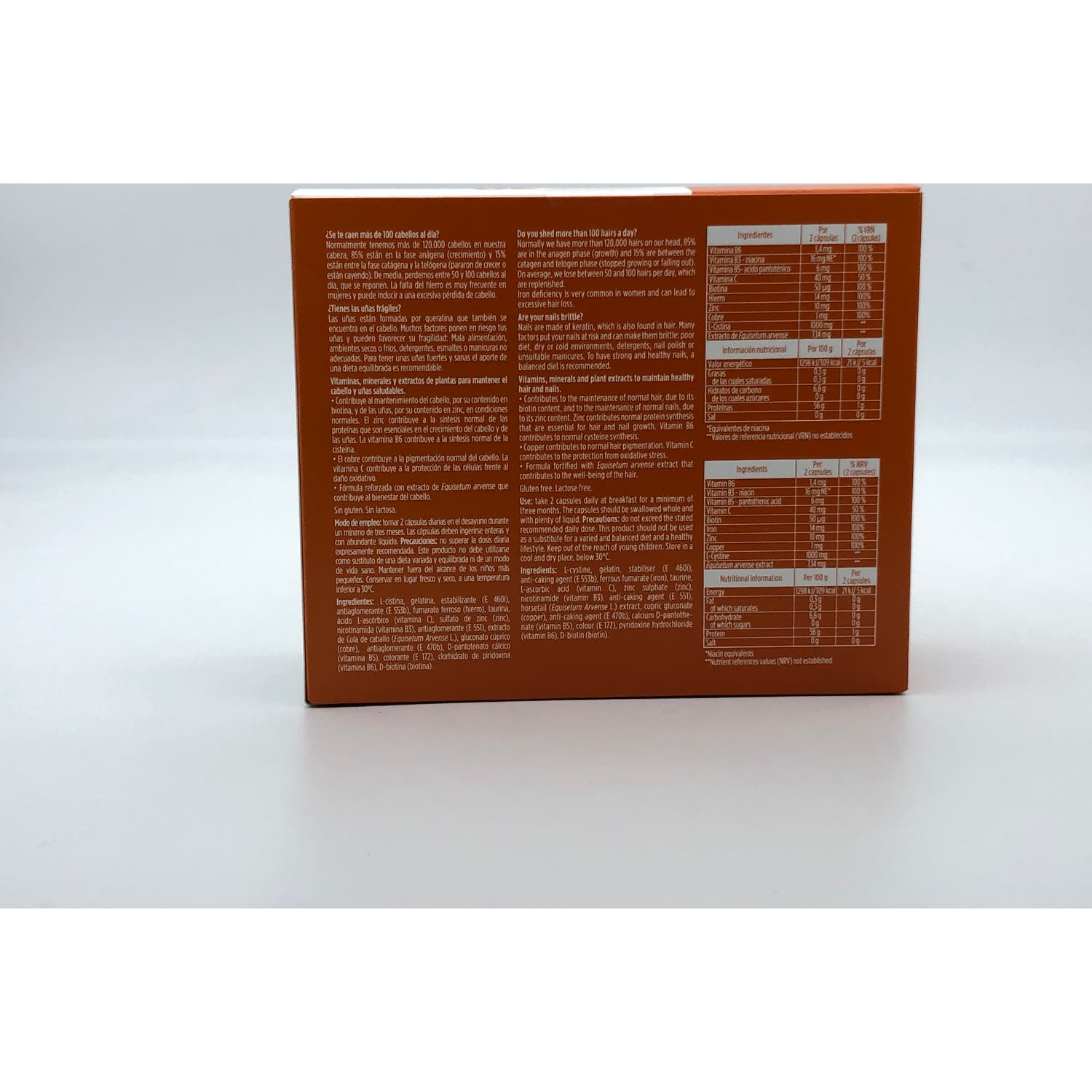 Este complemento contribuye a la síntesis normal de proteínas como la queratina, fundamental para que el cabello crezca con normalidad. Además, su riqueza en vitamina C y zinc ayuda a frenar la proliferación de los radicales libres para evitar los daños oxidativos.