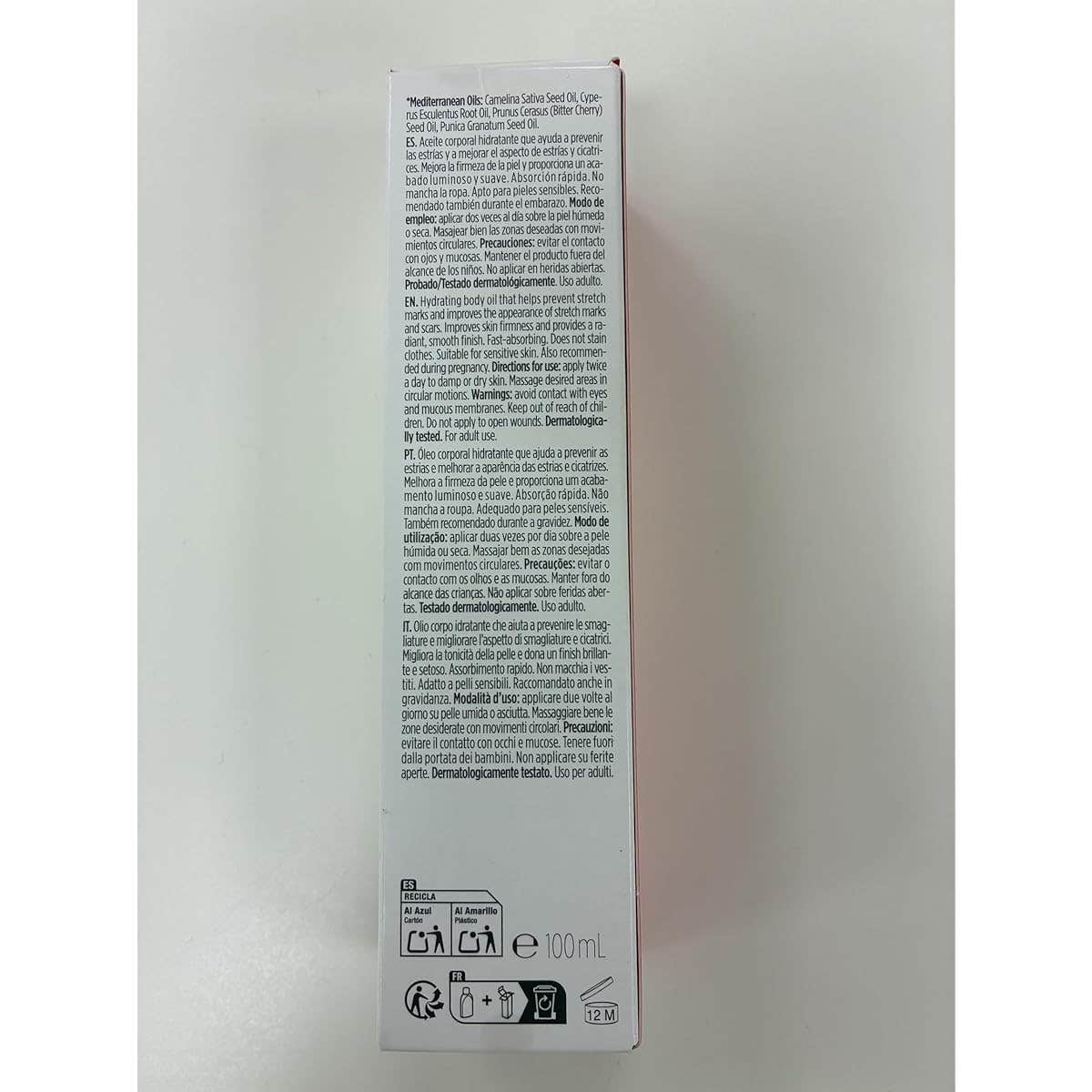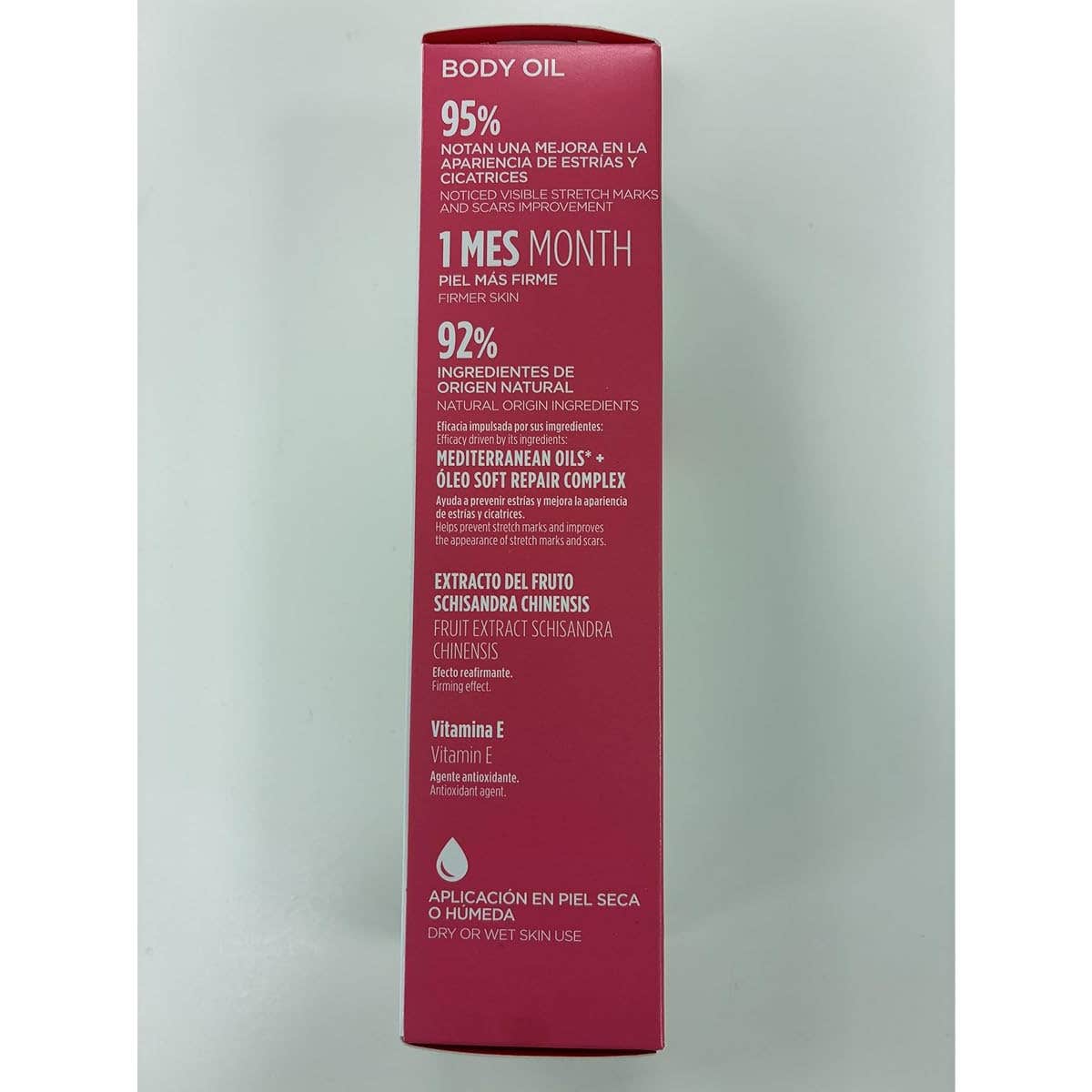 Efecto antiestrías, Efecto reafirmante, Mejora significativa de cicatrices, Realza la belleza y remodela el aspecto de la piel, Aporta luminosidad, Suaviza e hidrata la piel, Fórmula de rápida absorción, Apto para todo tipo de pieles, incluso sensibles, No mancha la ropa, Puede aplicarse sobre piel húmeda, Testado dermatológicamente.