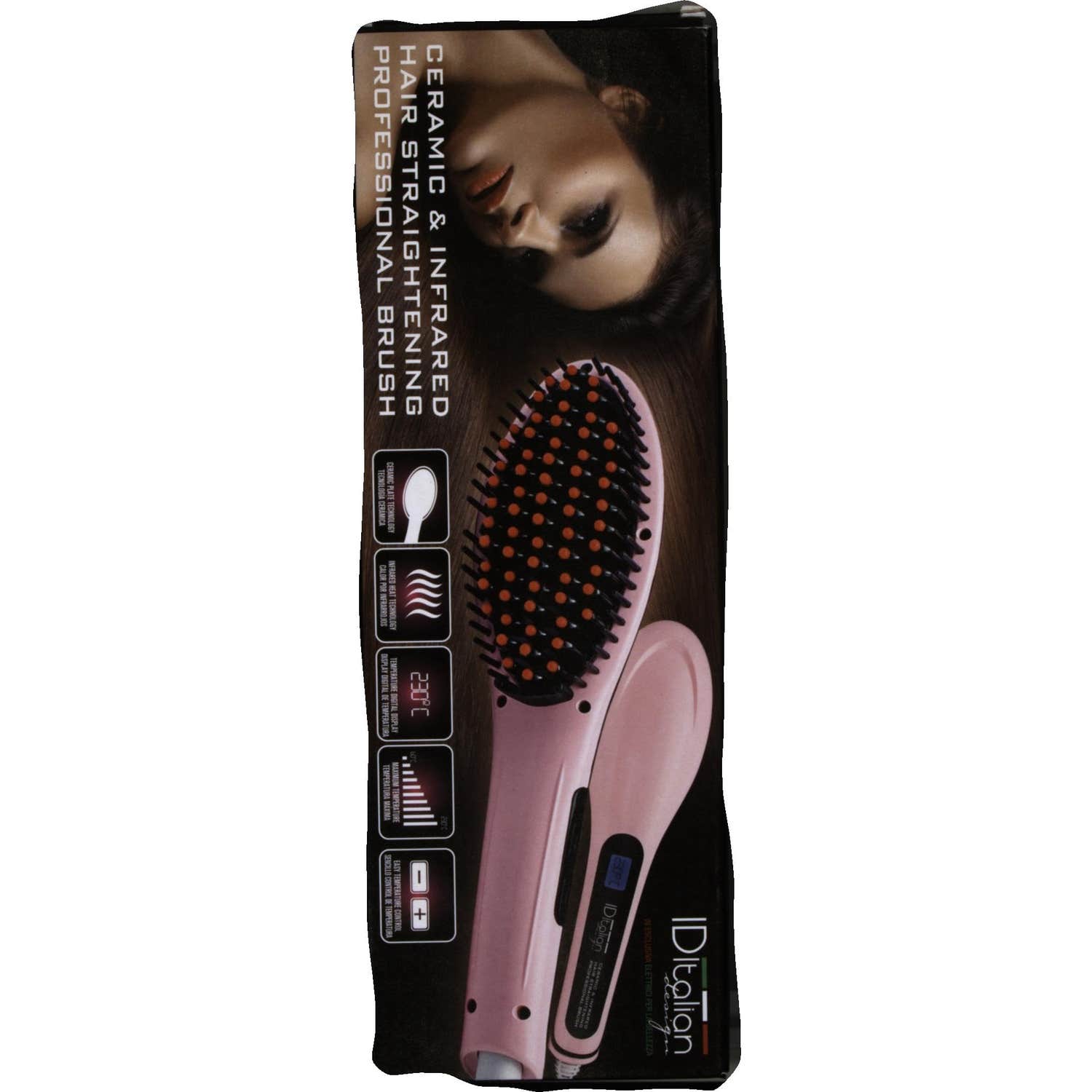 Italian Design cepillo alisador es un accesorio que moldea, riza y alisa el cabello sin quemarlo. Está dotado de una placa de cerámica profesional, que permite controlar la temperatura para adaptarla a cada tipo de cabello.