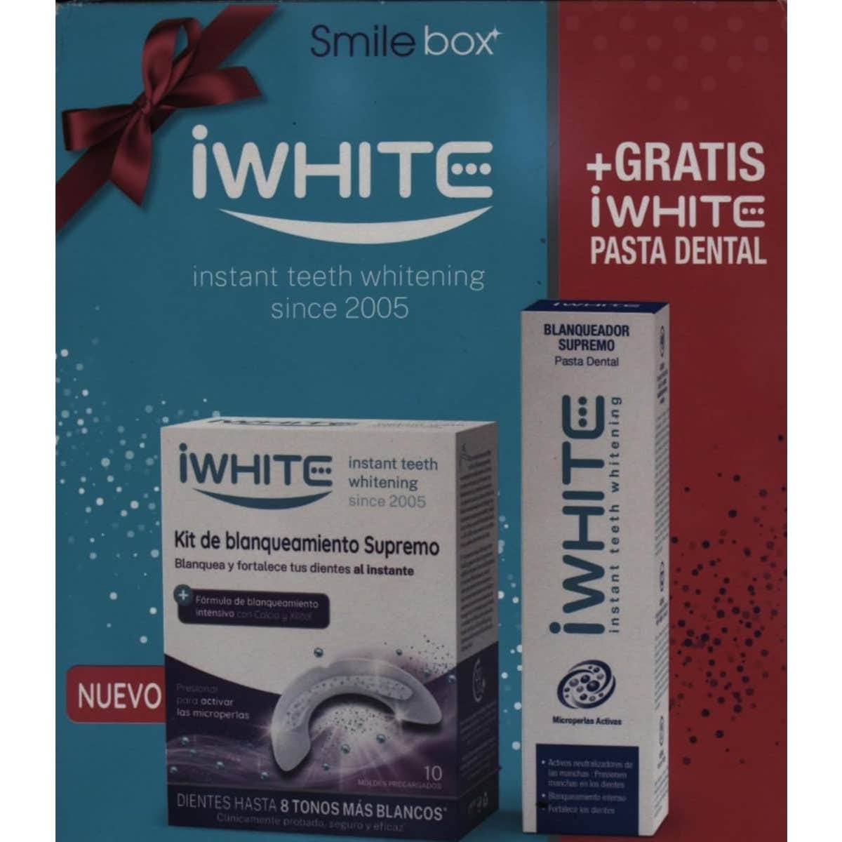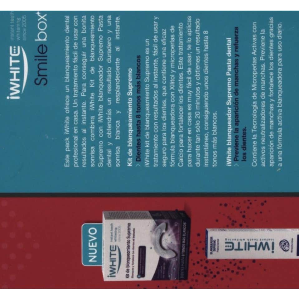 iWhite Kit Blanqueamiento Supremo 10 Moldes + Dentífrico 75ml es la solución avanzada para obtener una sonrisa más blanca y saludable en casa. Este kit de blanqueamiento dental profesional incluye 10 moldes precargados con un potente gel y un dentífrico de 75 ml, diseñado para adultos que buscan resultados rápidos y seguros.