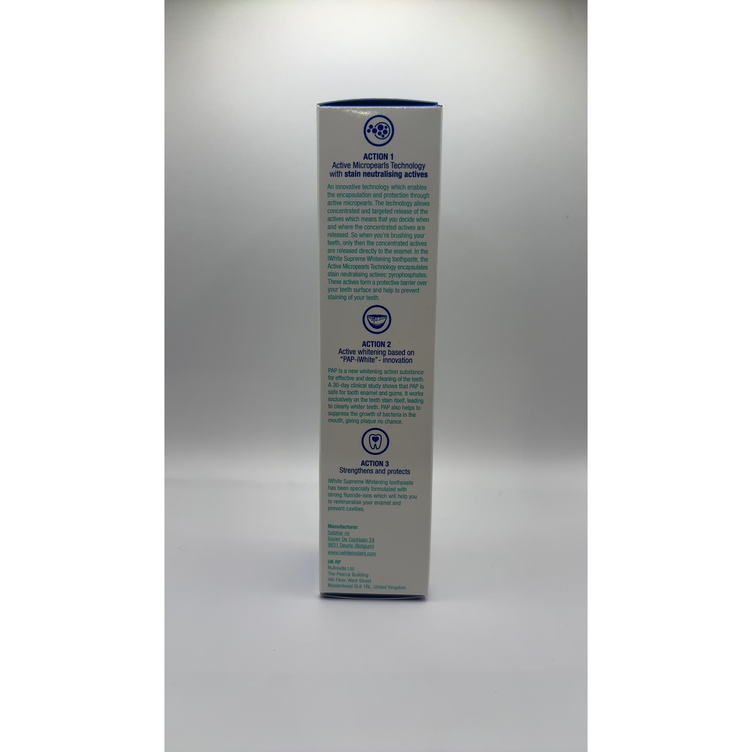 La fórmula de esta pasta dental te aporta una triple acción blanqueadora que te ayudará a prevenir las manchas en los dientes, restaurar el esmalte y a blanquearlas en profundidad: