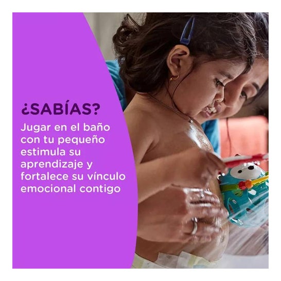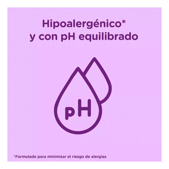 Tiene un pH equilibrado y está formulado para minimizar el riesgo de alergias, sin colorantes, sulfatos, ftalatos, jabón ni alcohol. Además, evita que irrite los ojos, y está enriquecido con vitamina E.