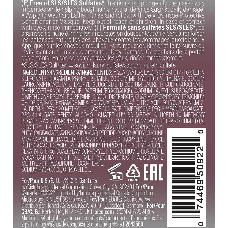 Joico Defy Damage Protective Shampoo de 50ml es un champú diseñado para ofrecer protección y fijación del color. Este producto intenso y libre de sulfatos SLS/SLES se encarga de limpiar suavemente las impurezas del cabello.