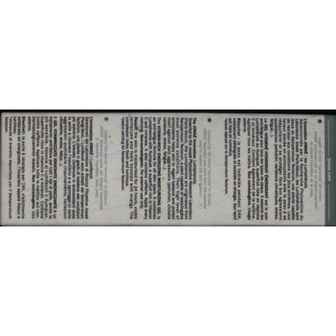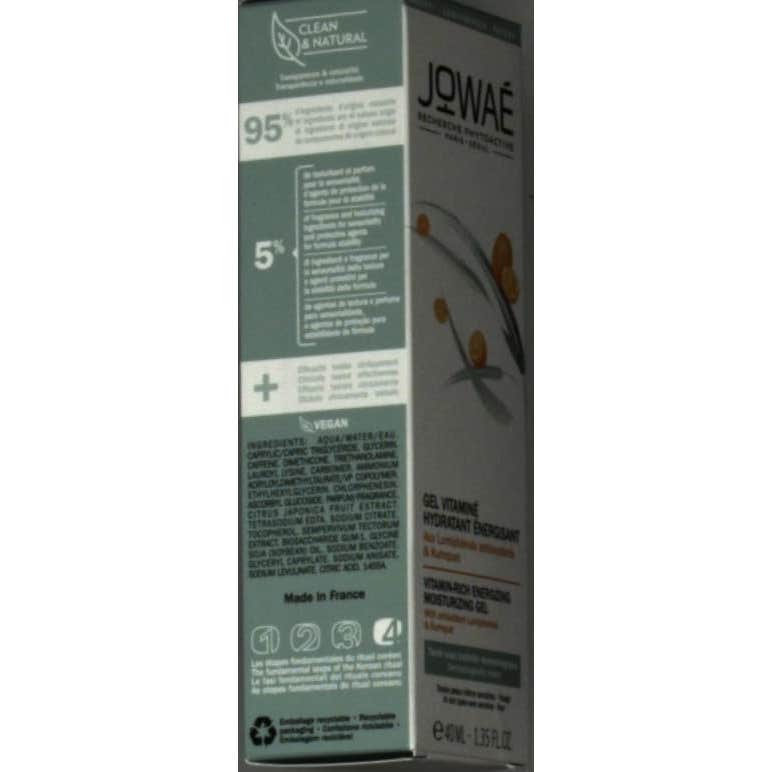 Jowaé Gel Vitamínico Hidratante Energizante 40ml está diseñado para revitalizar y energizar la piel, con una fórmula a base de lumifenoles antioxidantes, kumquat (una superfruta rica en vitamina C y minerales) y cafeína. Apto para todo tipo de pieles, incluso las sensibles.