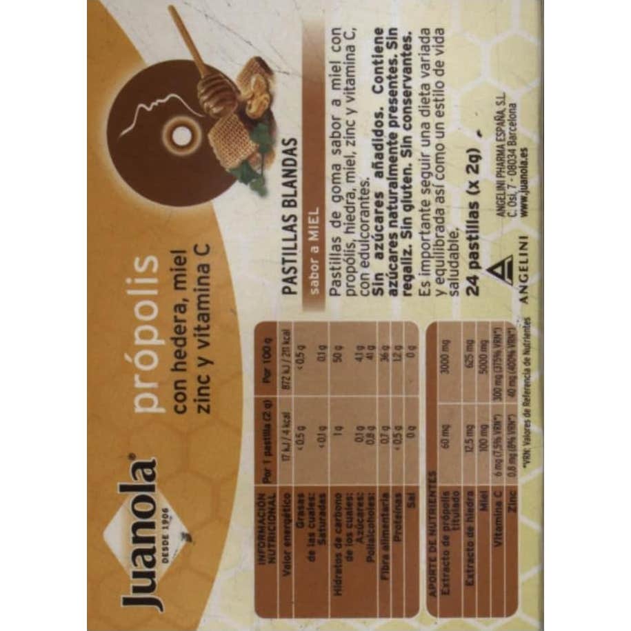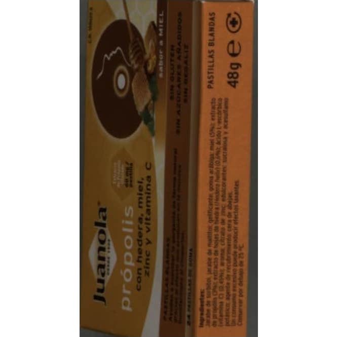 Complemento alimenticio en forma de pastillas blandas, elaborado a base de extracto de propóleo, hiedra, miel, zinc y vitamina C. Indicadas para la relajación de la garganta en procesos de carraspera y resfriado.
