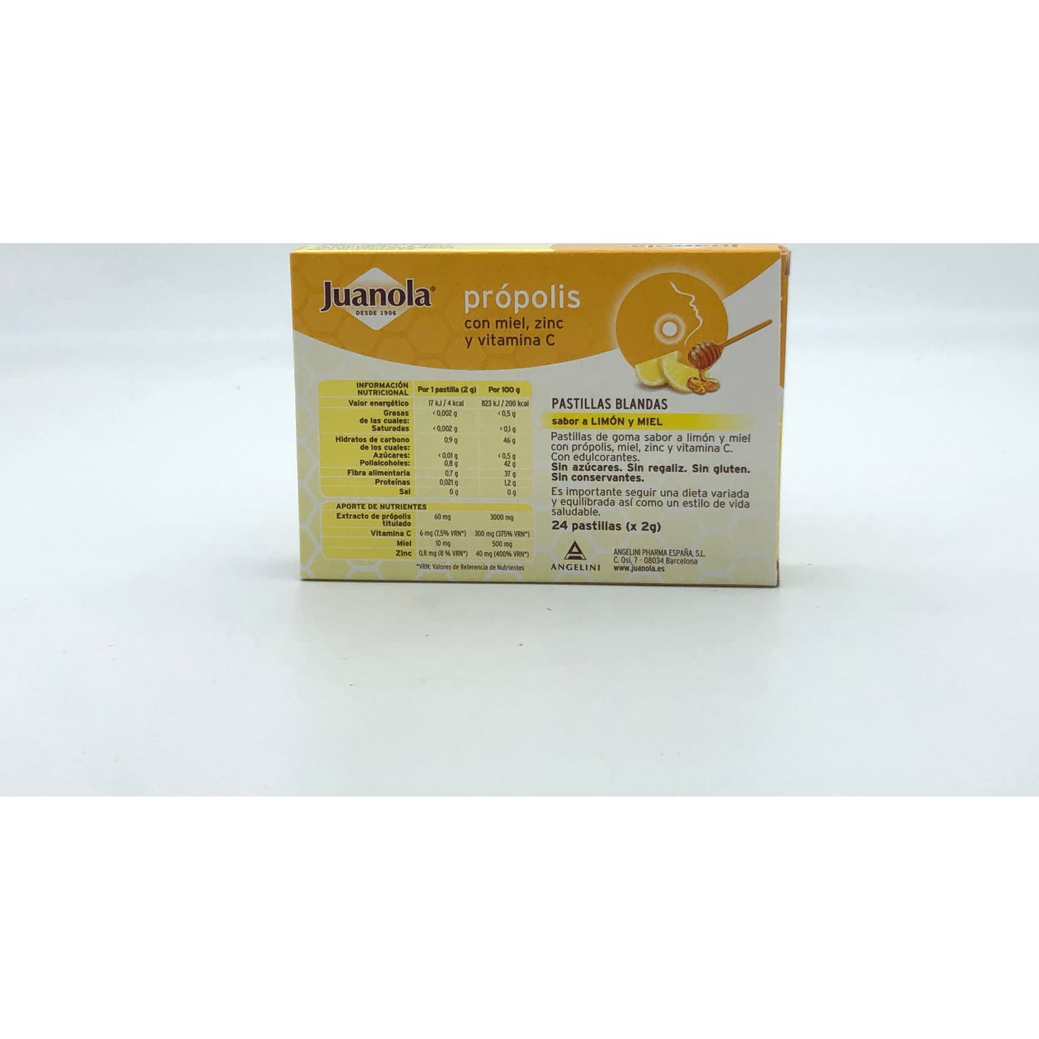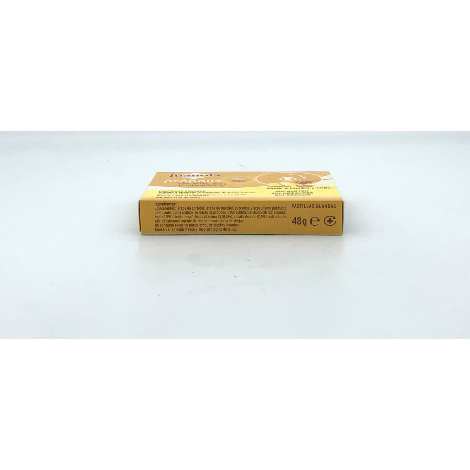 Juanola Própolis con Miel, Zinc + Vitamina C 24uds son pastillas de goma con sabor a limón y un alto contenido en própolis y miel, dos ingredientes esenciales para suavizar el tracto respiratorio.