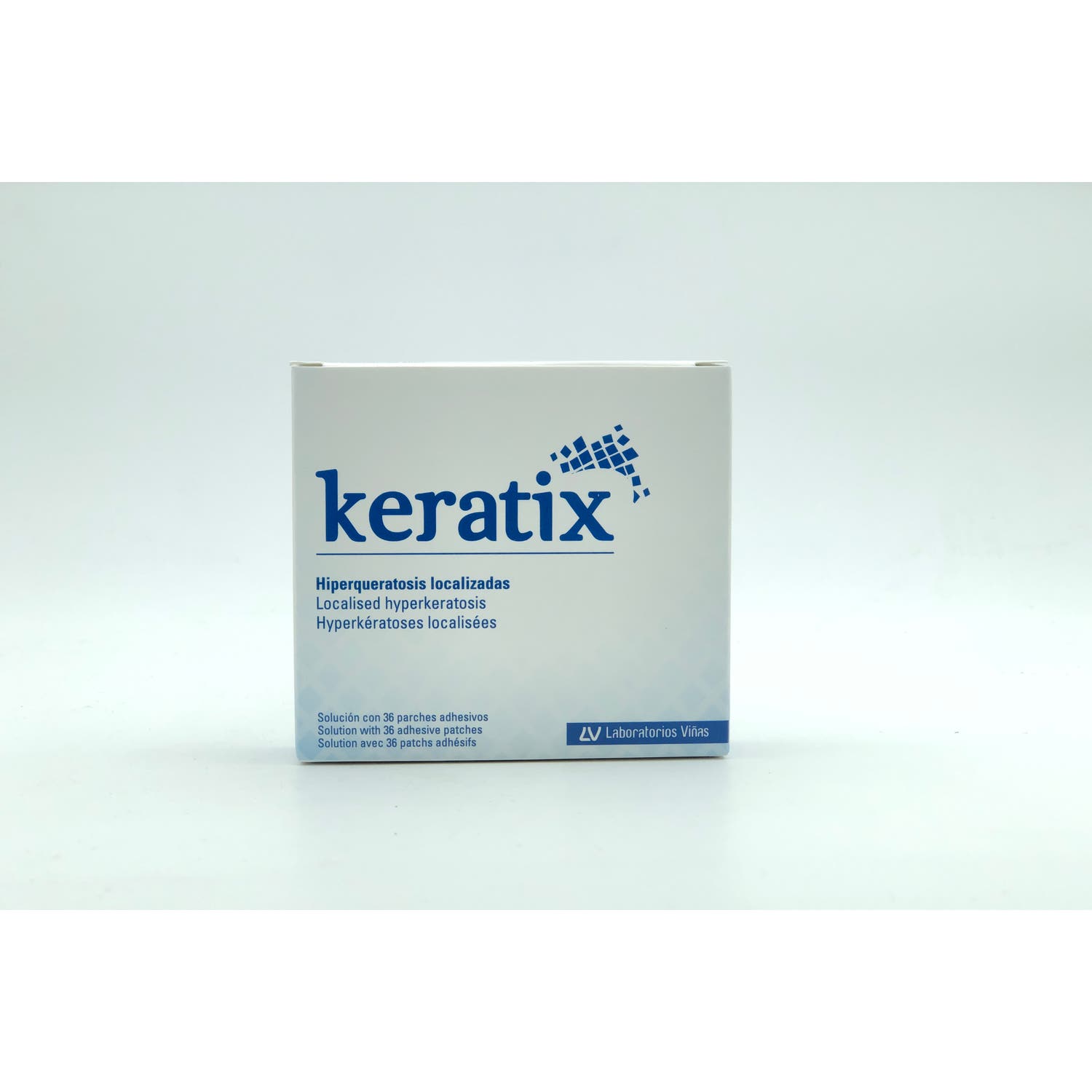 Keratix Solución gracias a su contenido de ácido salicílico (25% en solución) aporta mejoras en el grosor y textura de la piel afectada, y puede usarse en cualquier parte del cuerpo ya que contiene un pincel para su más precisa aplicación, al tiempo los 36 parches hacen oclusión en la zona afectada, potencializando el tratamiento.